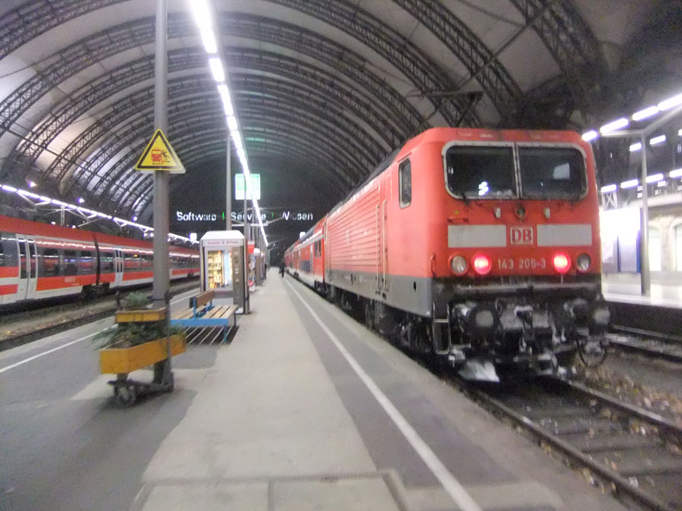 In Dresden dann kaufte ich schnell das Zugticket nach Chemnitz. Der Zug sollte warten aber als ich das Ticket hatte, legte er gerade los. Zum Glück hatte ich das €16 Flexticket statt €15 Zugbindungs-Ticket gekauft. Jetzt hatte ich eine 3/4 Stunde, aß Bockwurst, Burger und Salat. Bei Burger King gröhlten Albanen oder sowas herum, hatten wohl nichts besseres zu tun.