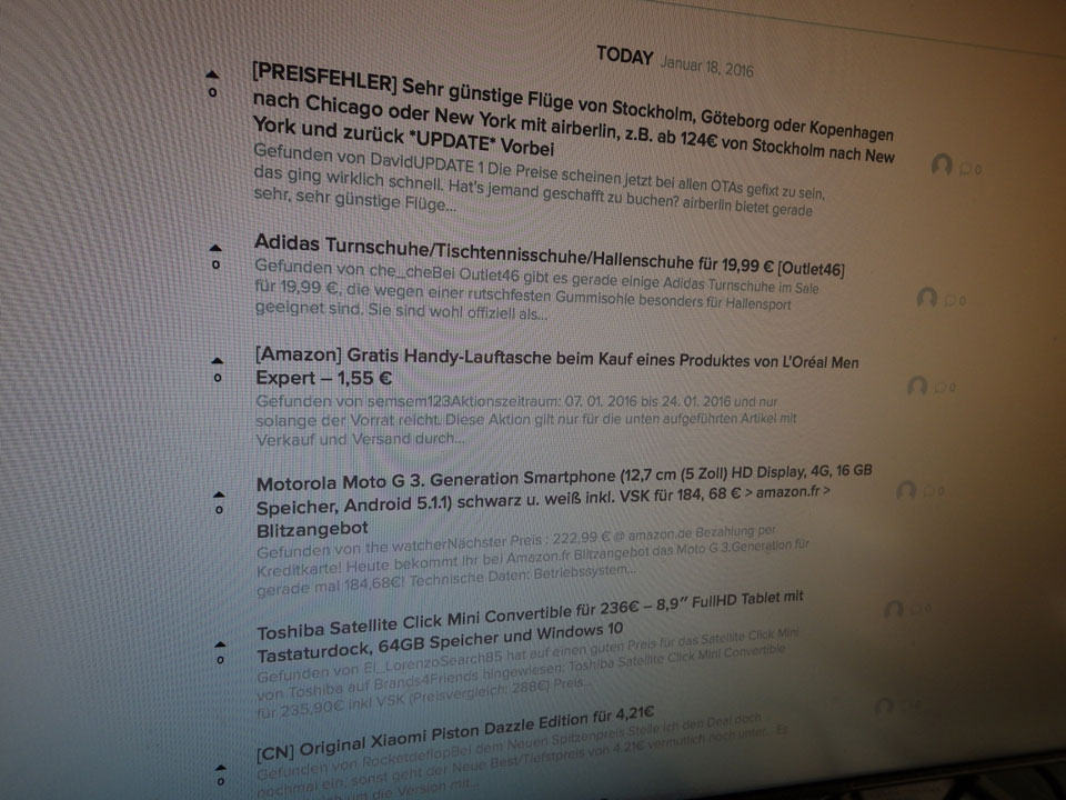 Beim Testen sah ich dann, dass es Probleme mit mein-deal.com gab. ich muss wohl echt ein paar Tests schreiben, damit ich regelmäßig Fehler im Aufbau der Seiten erkenne. Ich denke, den neuesten Deal nehmen und dann die Links herausfischen sollte reichen. Das Herauslesen von Werten in HTML Tags wie bei snipz ist doch nicht so einfach, klappte schließlich auch. BeautifulSoup ist Klasse. Morgen dann der Rest der Pop Values.