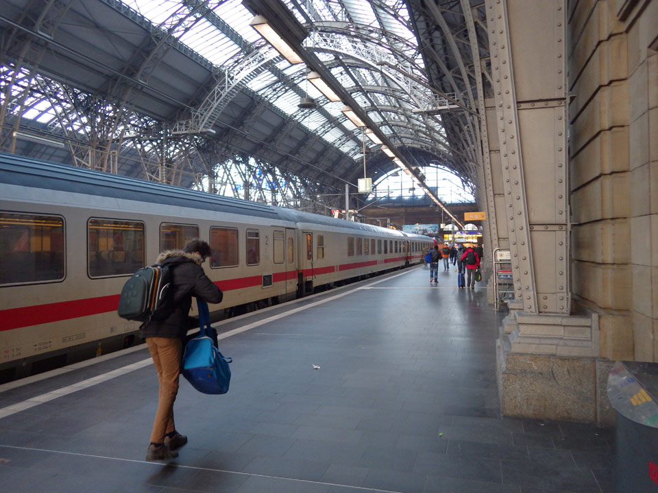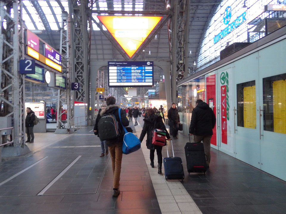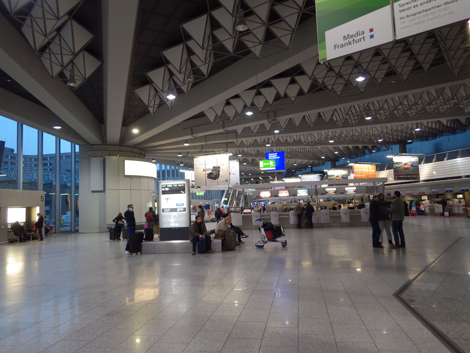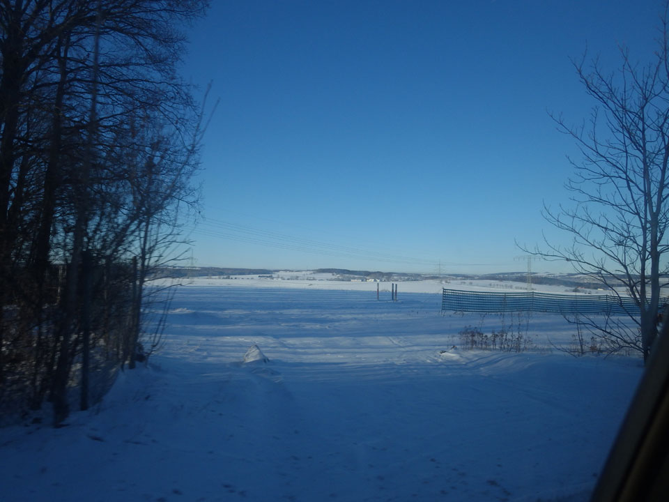 Die Fahrt ging ruhig weiter. Fahrerwechsel bei Eisenach und durch die schöne Winterlandschaft ohne Stau. Ich nickte auch mal ein paar Minuten weg, war dann nach 16:00 in Frankfurt. Auf dem Hbf eine Currywurst, dann mit dem Zug zum Flughafen.