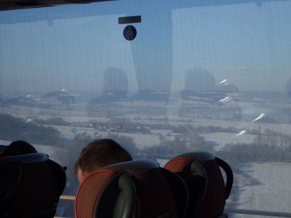 Vor 10 wurde ich freundlicherweise zum Busbahnhof gefahren. Kalt aber schönes Wetter. Im Warteraum war’s ausreichend warm. Nur lautes Arabisch störte etwas die morgentliche Ruhe, manche haben halt immer was zu erzählen.
