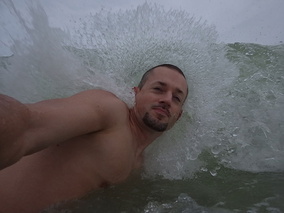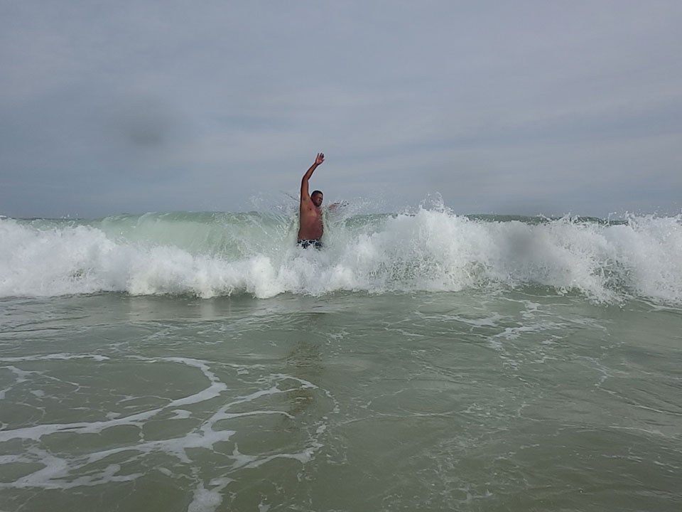 Teures Frühstück in einem exklusivem Café. War gut und am Strand war’s voll. Heftige Wellen und mit der Ricoh mal im Wasser. Eigentlich wollte ich nur noch die Yi nehmen, doch bei der Ricoh kann man Shutter Priority einstellen – 1/2000s friert die Wellen gut ein.