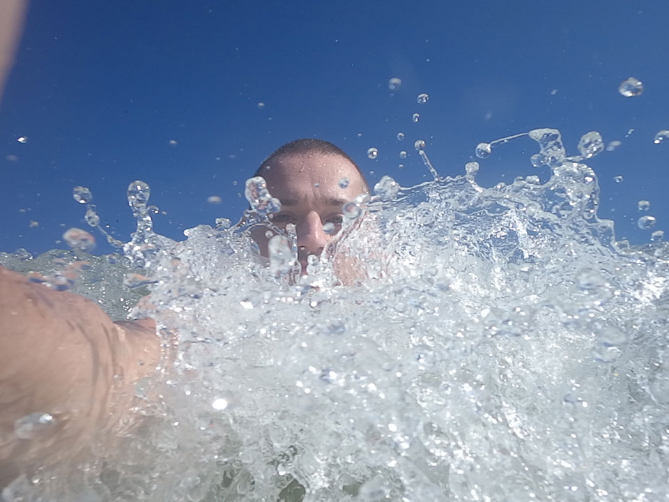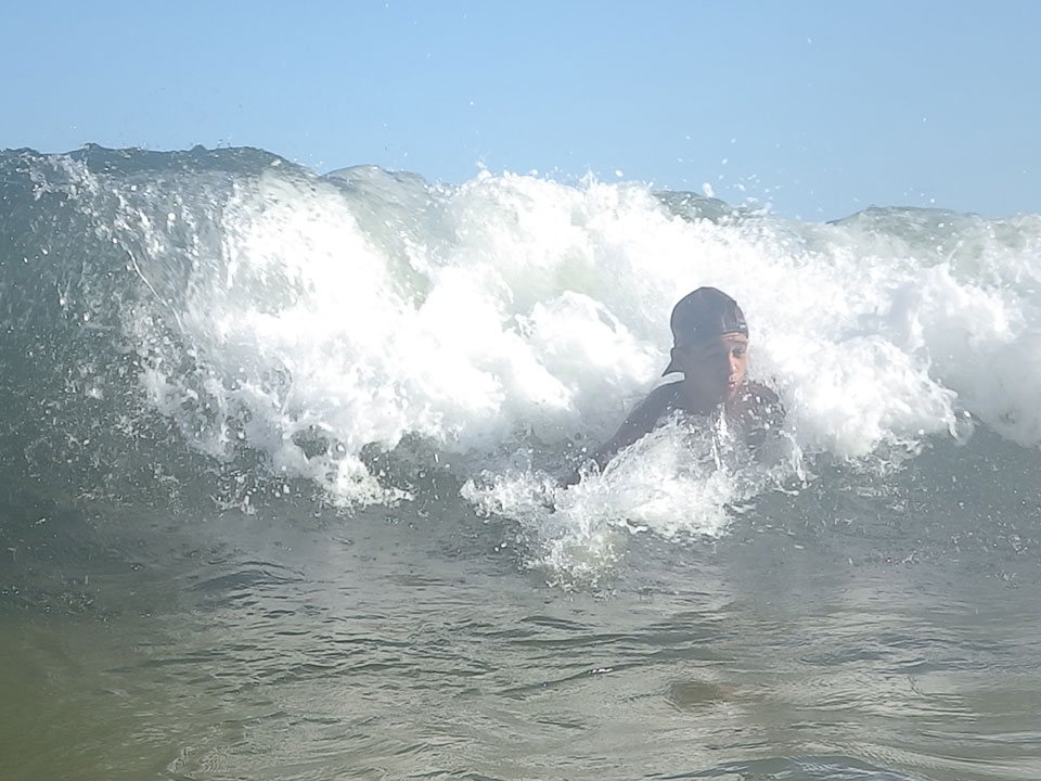 Chillen, dann Nachmittags bei Cono was essen und an den Strand. Die Sonne knallte heute, Sonnencreme war Pflicht. Ein paar gerötete Touristen sprangen als Warnung umher. Zum Wochenauftakt war’s merklich ruhiger, auch die Wellen.
