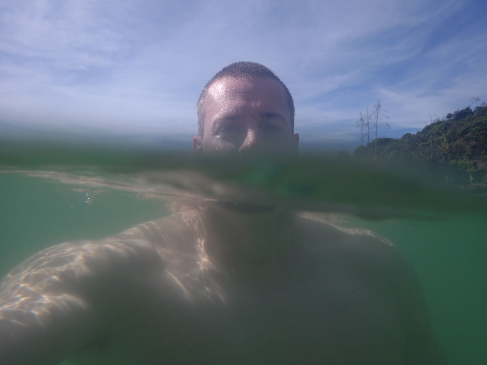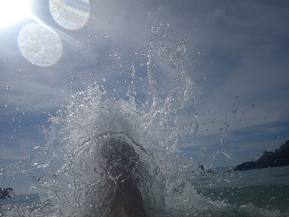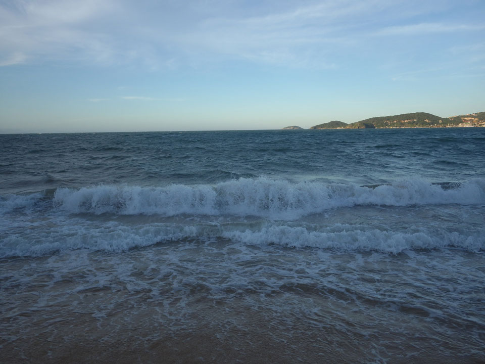 Am Strand dann waren extrem viele Leute. Ich fand nur ein kleines Plätzchen direkt am Wasser. Die Wellenhöhe ist berechenbar und ändert sich auch nicht. Alles easy und nett, das Wasser herrlich.
