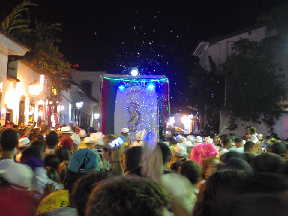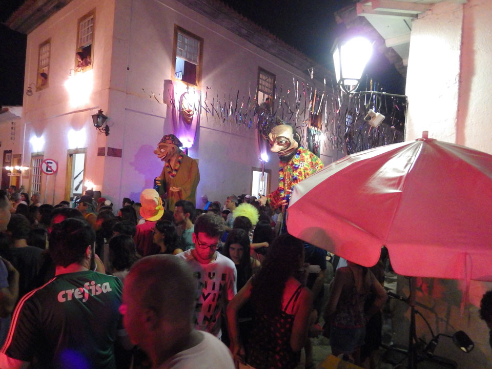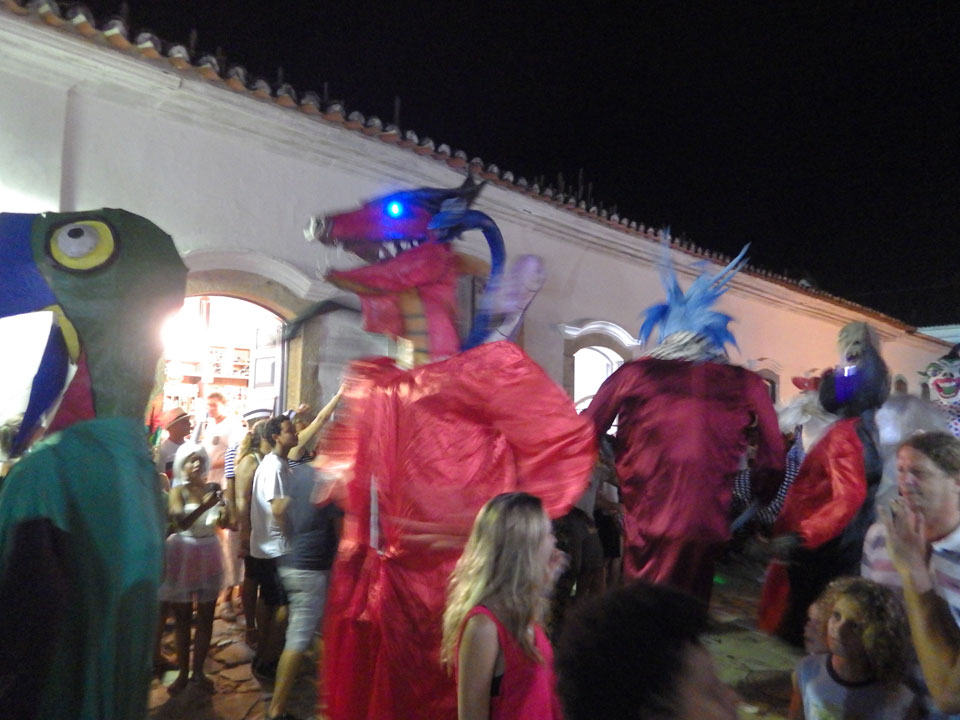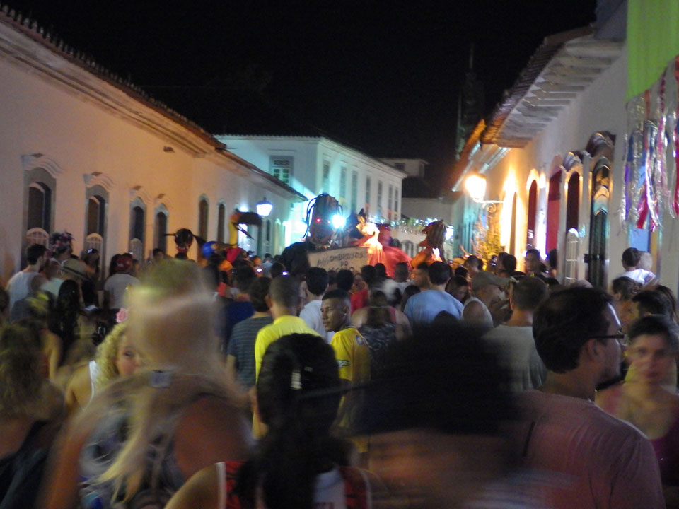 Abends ging’s raus in den Carnaval. Etwas essen und dann durch die alten Straßen aus der Kolonialzeit. Ein Paleontologe mit Tochetr war im Zimmer aus Patagonien und gab mir den Tipp, doch feste Schuhe statt Flipflops zu nehmen. Guter Tipp, denn die großen Steine auf der Straße machten den Weg alles andere als eben.