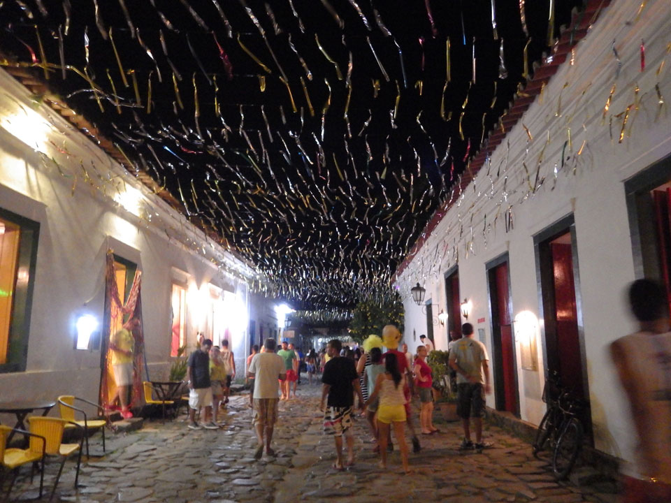 Gute Stimmung viele Leute aber alleine. Ein paar Leute sprachen mich an, arg jung. Ich hatte Bier und Caipi und eine gute Zeit. Die Feuer in Paraty schien sicher. Die Leute haben ihre Handies sogar in der Po-tasche sitzen – unmöglich sowas in Rio. Alles sicher und weniger verrückt, als ich’s von den anderen Orten kenne. Mir gefiel’s, auch wenn mehr Action gut wäre aber ich bin hier und sehe mal was anderes, traditionelleres.