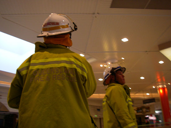 Der Bassist aus Johno’s Bar saß in einem Shopping Center auf der Bank. Nach diversen Einkäufen, einem Café und noch mehr shopping war es Nachmittag. Ein Film „Hostel“ startete erst gegen 5. Zuviel Zeit, die mit Essen und herumlungern auch verging. Zwischendurch stolperten mal ein paar Feuerwehrleute durch die Gegend.