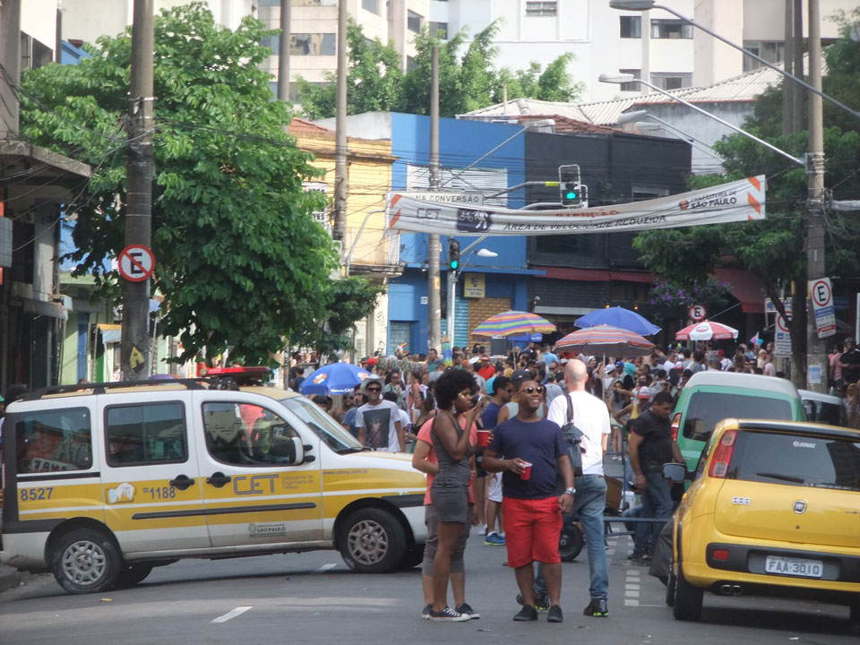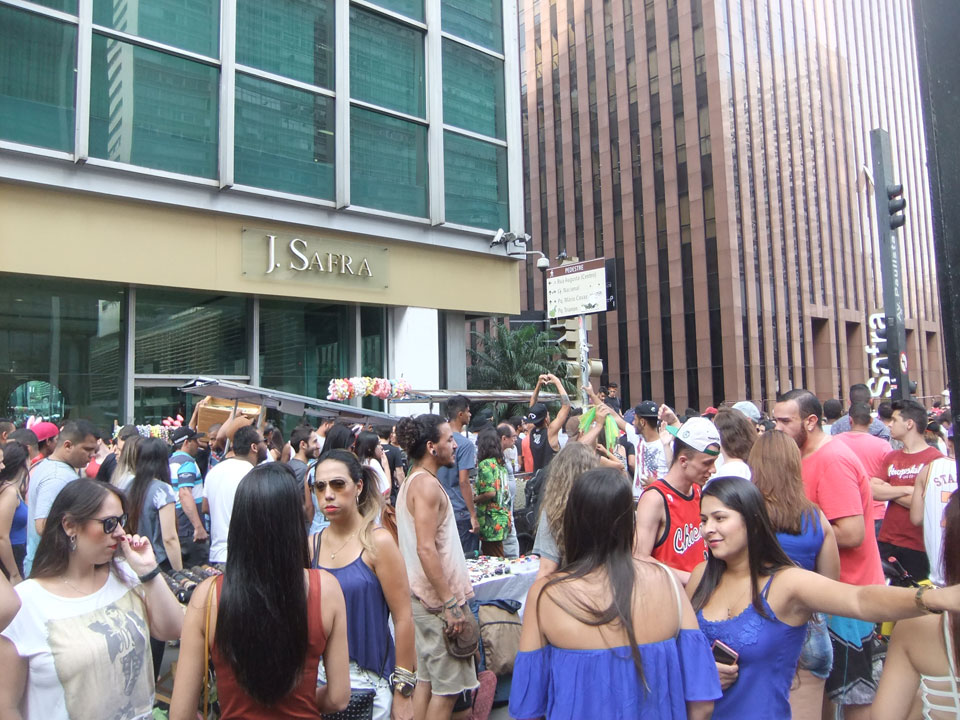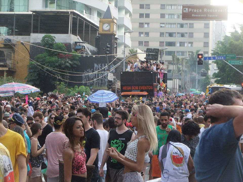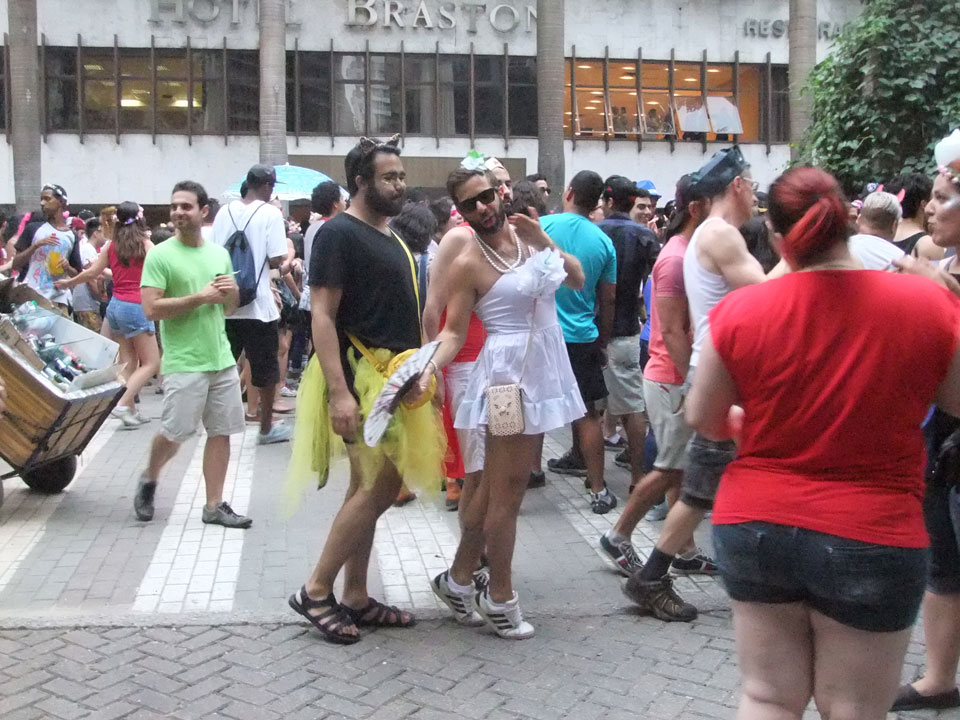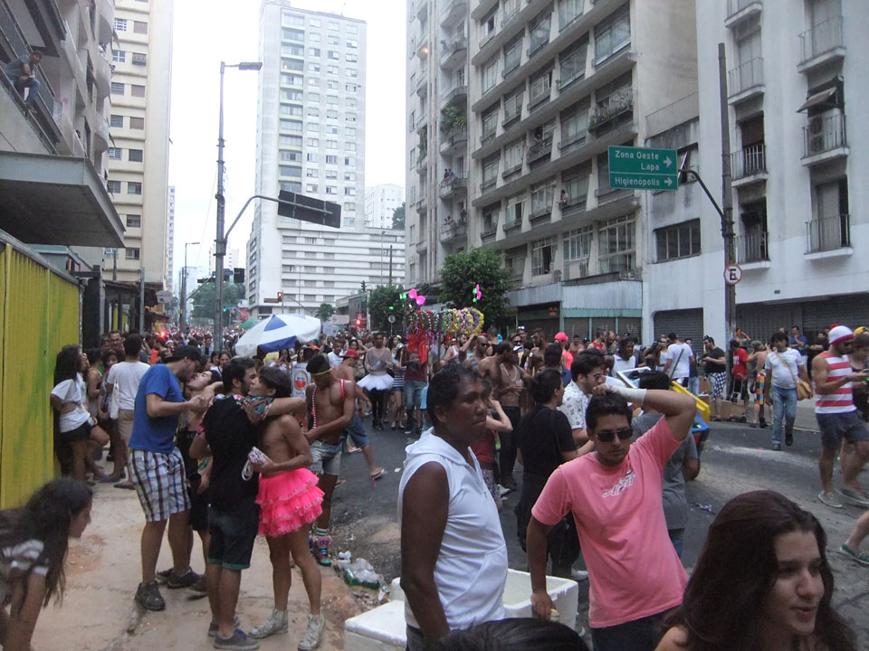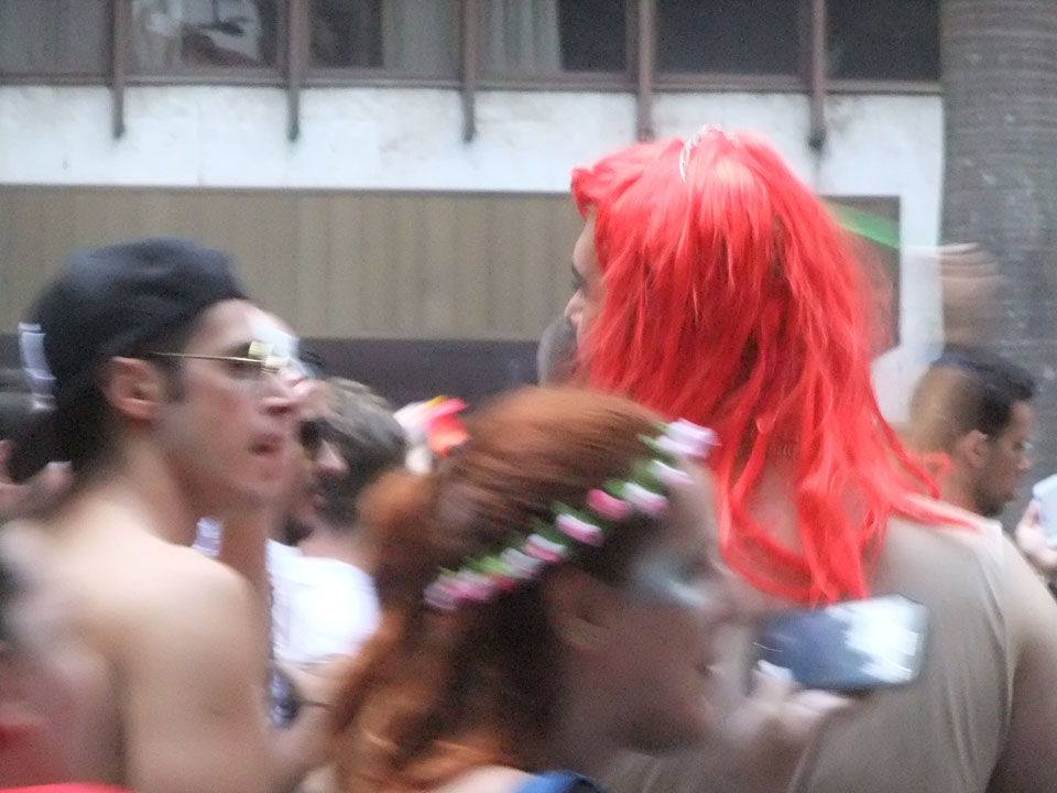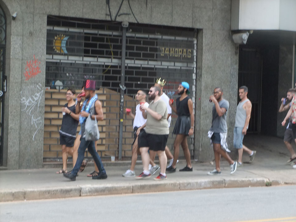 Nachmittags dann hatte eine alte junge Bekannte Zeit und zeigte mir Sao Paulo. Als ich runter auf die Augusta ging war ich doch überrascht. Überall Leute in Carnaval-Laune. In SP geht das Feiern immer weiter. Kostüme, Alkohol, halbnackte schwule Männer – schon irre.