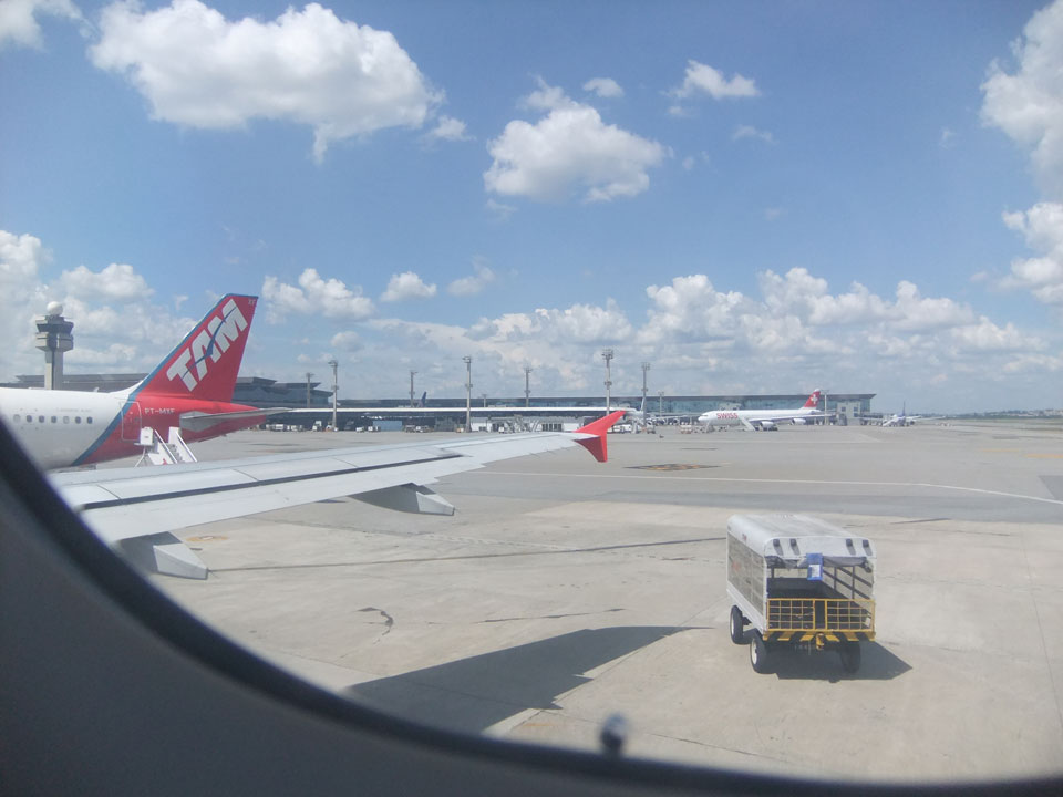 Gate-Änderungen kommen oft vor und werden nicht oft angesagt, schon gar nicht auf englisch. Habe mir nur vorzuwerfen, nicht besser portugiesisch zu verstehen. Es ging aber alles nochmal gut und ich saß im Flieger raus aus SP und flog über das riesige Stadt-Areal.