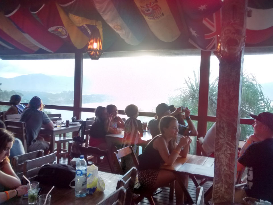 18:30 – 19:30 gibt einen kleinen, schwachen Caipirinha, der aber gut schmeckte – weil gratis. Ich saß da, schickte ein paar Grüße mit und nach dem Sonnenuntergang. Ansonsten war wenig los. Schon gegen 21:00 machte ich mich bereit für die Heija. Etwas mehr Mücken hier aber ich bin trotz Upper-Bunk ganz zufrieden mit dem Bett. Lauter Ventilator und keine AC – weniger Erkältungsgefhr, obwohl hier einige Leute stark husten.