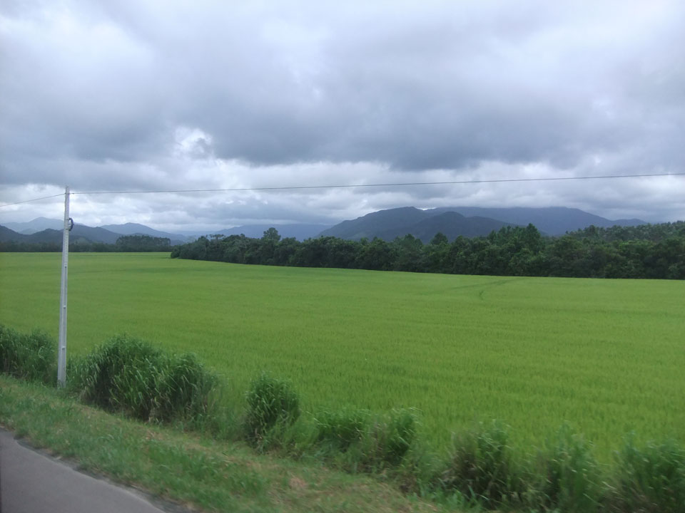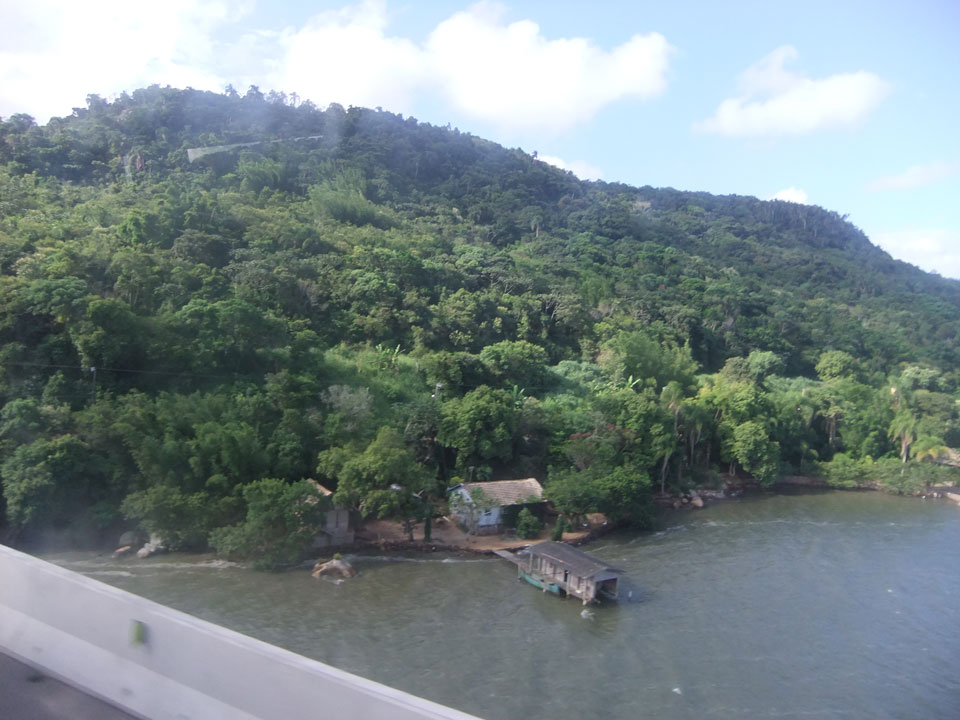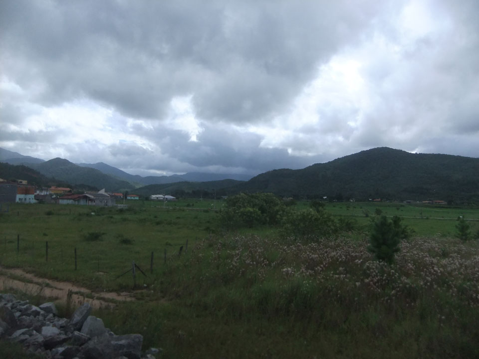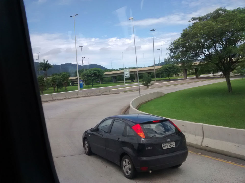 So ging die Fahrt Richtung Süden durch nette Landschaft. Viel Wiesen, Felder, ein paar Flüsse und viele Kurven. Der Bus hatte einen ordentlichen Speed drauf, wurde dann vor Porto Alegre einige Mal von Stau gestoppt. Wir kamen eine knappe Stunde zu spät an, was noch OK ist. Brasilien ist echt groß, wenn man die so eine lange Strecke auf der Karte als kurzen Sprung sieht.