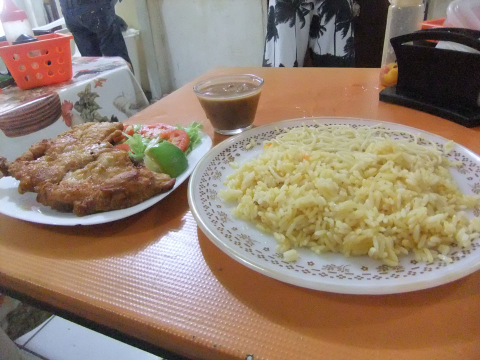 Ich suchte eine Weile nach einem Restaurant. So lange suchte ich selten woanders. Schließlich fand ich doch eine Ansammlung von Essensläden, die aber gerade schlossen. Einer machte mir ein Fisch-Filet.
