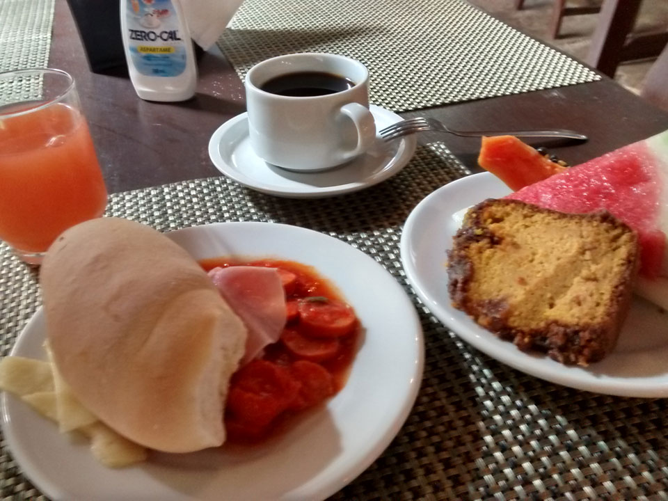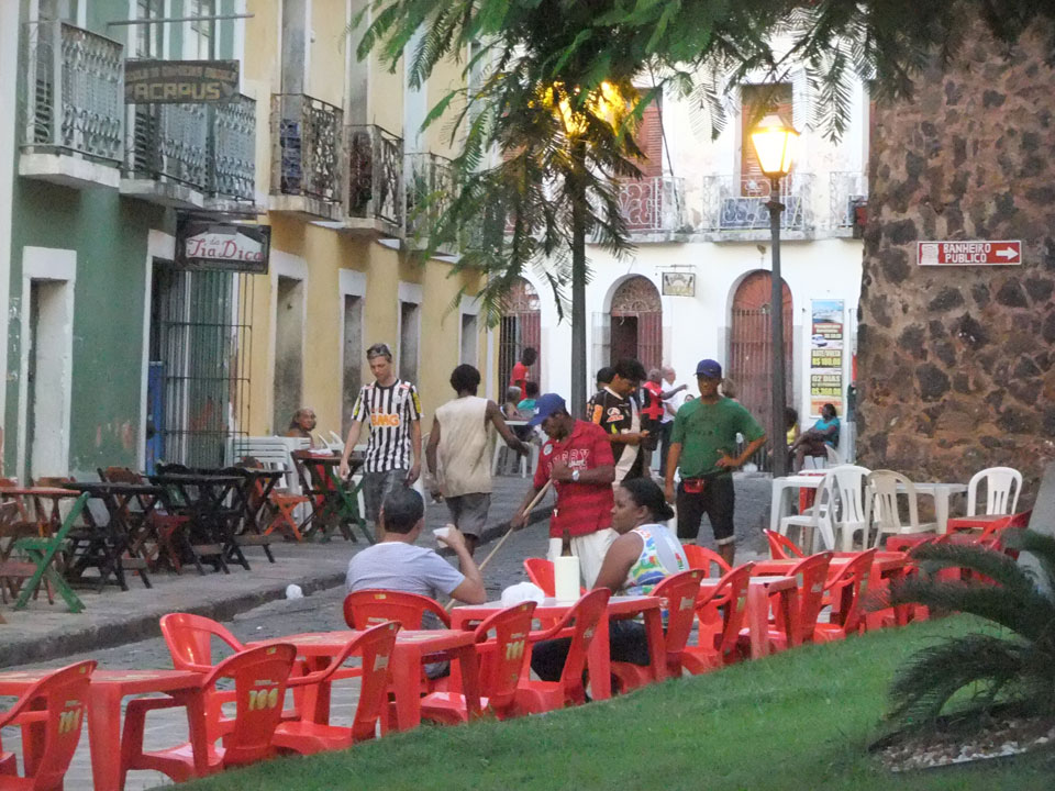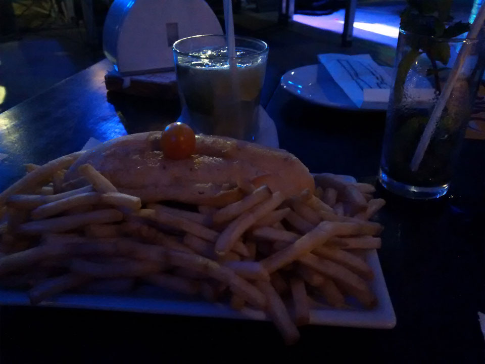 Dann gegen Mitternacht ging’s auch schon los – super Live-Musik mit einer 9-köpfigen Band. Die Musik war das Beste, was ich bisher in Brasilien hörte und voll den Eintritt wert. Leider war’s auch hier wenig gefüllt, viele leere Tische. Ich hatte einen Mojito, Caipi und schließlich noch ein Filet Mignon Sandwich – machte 55 BRL (€13,50). Nach 2 war dann auch Schluss. Die paar verbliebenen Leute fuhren weg aber ich brauchte ein Taxi. Ich rief eins per Handy, Hilfe gab’s von den Bouncern. Gleich auf der Straße wurde eins herbei gewunken und für 30 BRL war ich dann auch wieder fix im Hotel.