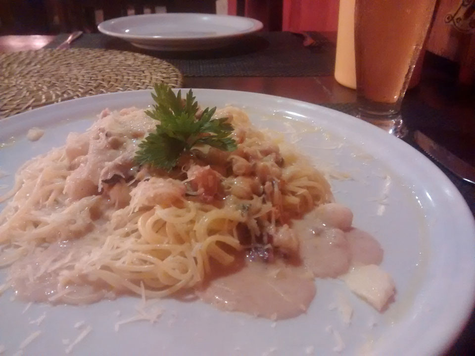 Abends dann schließlich ging ich vor die Tür. Zum Sonntag waren die Gassen noch leerer als sonst, kaum ein Restaurant hatte geöffnet und auch keine Straßenstände weit und breit. Ich setzte mich erst auf den Plaza, fand die Preise dort jedoch zu teuer. Schließlich wieder in die “La Pizzeria”, dieses Mal aber Spaghetti mit Meeresfrüchten. War gut, hätte ohne Mittagessen nur etwas mehr sein können.