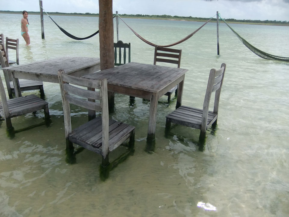 Die Lagune mit den Hängematten über dem Wasser ist ein beliebtes Photomotiv. Ich saß bissel da, chattete per Whatsapp und lag dann auch mal da. Das Wasser super und dann zum Auffüllen auch mal ein Regenschauer. Der Regen zog vorüber und die Leute kamen zurück. Eine Gruppe von 4-5 älteren Leuten fing ein Gespräch an. Ein deutscher sprach gebrochen Deutsch und erzählte, dass er jetzt in Paraguay wohnt, früher Porto Alegre. Da sind wohl viele Deustche.