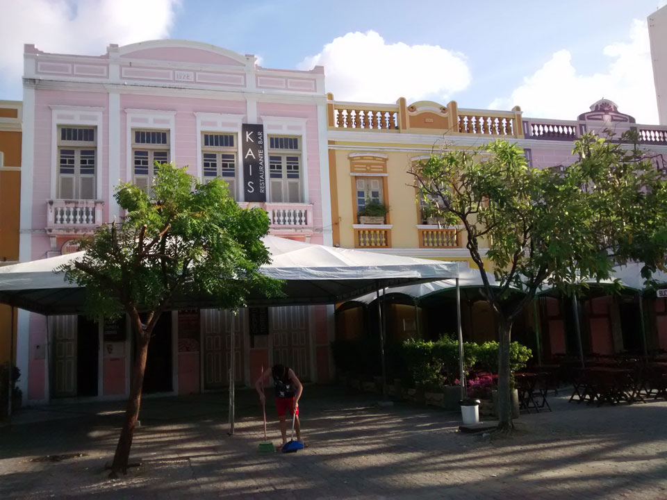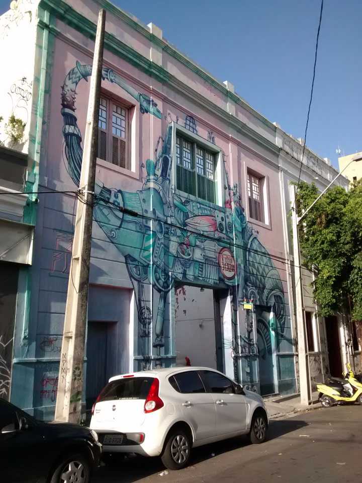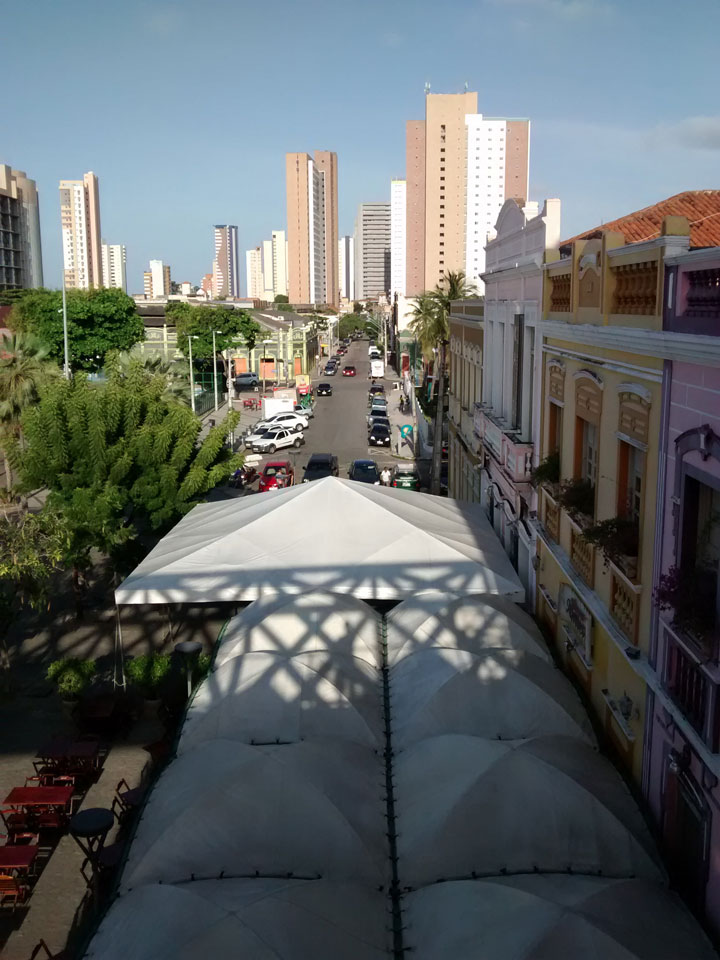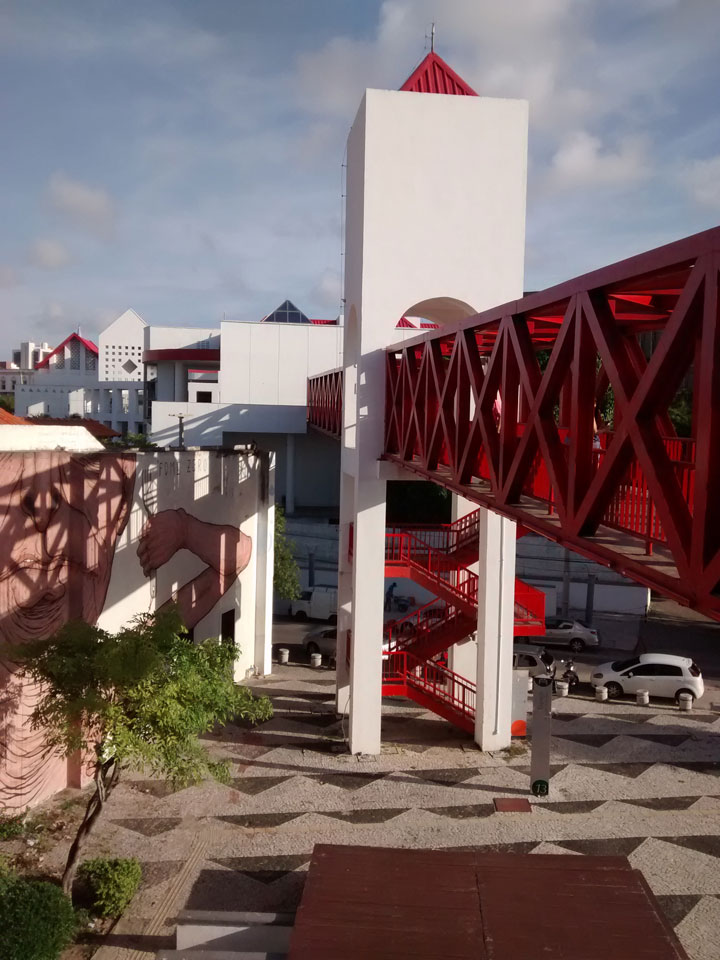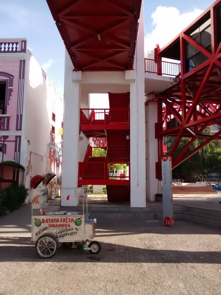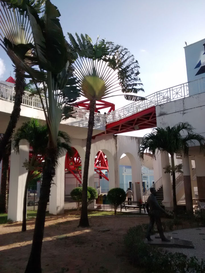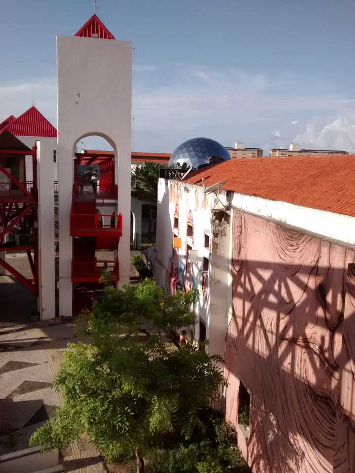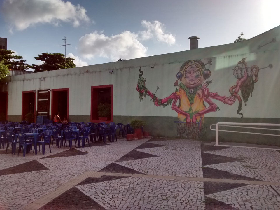 Erst mal ein Essen mit Acai Selbstbedienung und ’nem Burger + Kokosnuss. Per Google fand ich dann auch eine Bradesco am Drago do Mar. Das ist ein Kulturzentrum und ganz nett designt. Gestern abend war ich auch schon hier, Orbita ist halt hier, genauso wie einige andere Clubs.