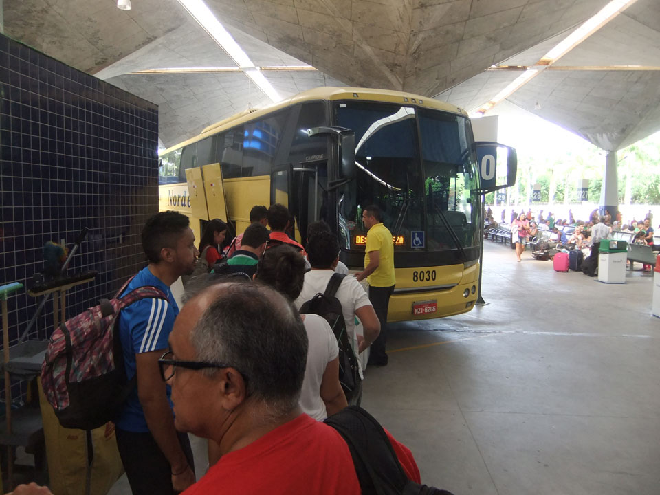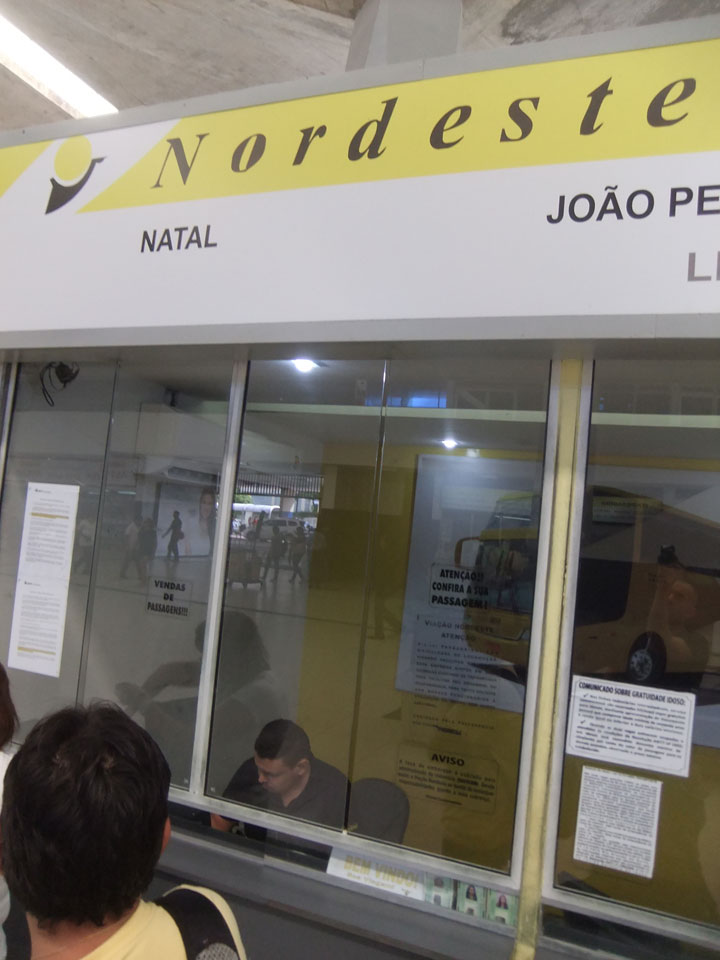 Mit dem Taxi ging’s dann nach 14:15 zu Busbahnhof (BRL 30). Dort sah ich den Schalter des Natal Unterehmens. Fensterplatz und 104 BRL. Schnell ging das alles, der Bus nur mäßig voll. Ich hatte gut Platz und nickte auch mal weg.