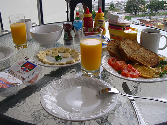 Zunächst holte ich die Zeitung. Dann ein schönes Frühstück. Nachmittags beschaffte ich bei Woolworth wieder Sachen. Gegen 15:30 klingelte eine SMS, der Amerikaner war da, schon im Treppenhaus.