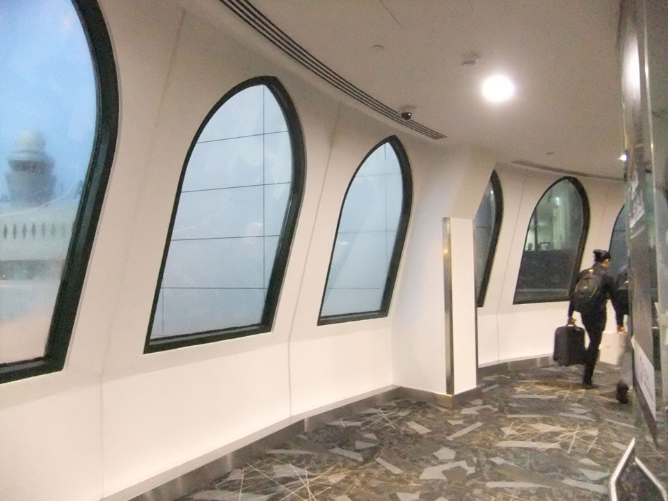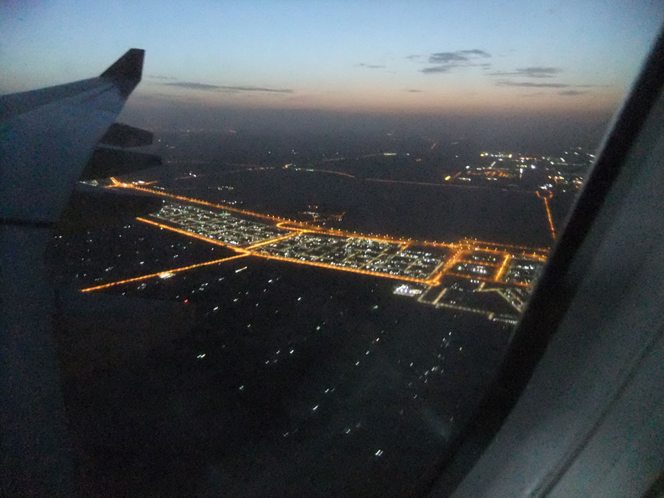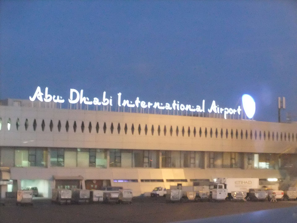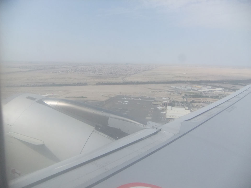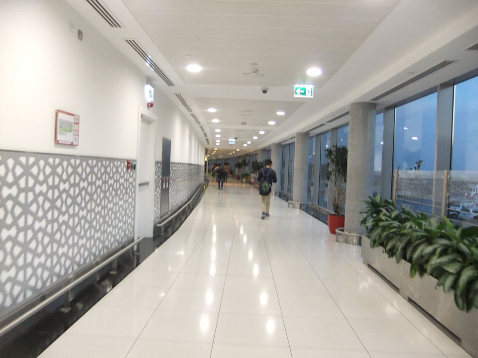 Anflug auf Abu Dhabi im Morgengrauen. Es ging gleich zu den internationalen Transfers – ein schönes Stückchen Fußmarsch. Sonnenaufgang und Müdigkeit meinerseits.