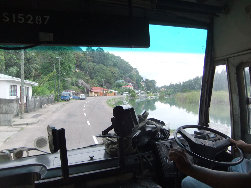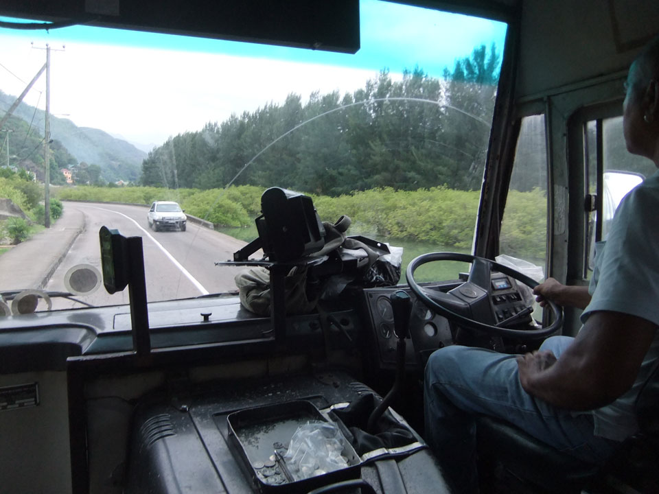 Ich hatte 500 Seychel Rupien geholt (ca. €37). Ein Local und seine Frau hätten mich nach Victoria mitgenommen. Ich nahm dann aber nach der Gepäckaktion den lokalen Bus. Mit 5 Rupien ein Schnäppchen bis Victoria.
