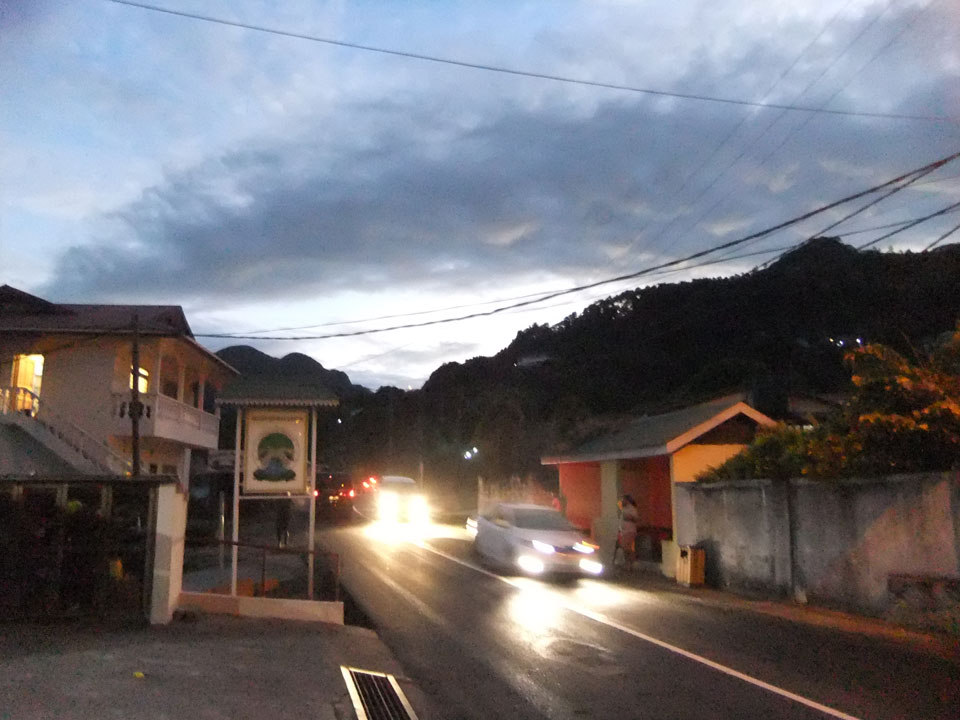 Das Wetter bewölkt und jetzt nach 15:00 wurde es auch langsam dunkler. Ich drehte eine Runde durch die Hauptstadt, die wohl eine der kleinsten der Welt ist. Schließlich wurde ich doch zu müde, nahm ein Taxi für 50 (von 100) zum De Quincy Village und meinem Gästehaus „Chez Lorna“. Da empfing man mich schon und sagte, dass mein gebuchtes Zimmer nicht verfügbar sei. Ich war da nicht so happy aber das Zimmer ihres Sohns war OK. Großes Bett und mit nur €25 sicher die billigste Unterkunft, die man hier bekommen kann. Ich legte mich hin und wachte trotz wecker erst nach 1 1/2h Auf. Inzwischen war#s 18:00, Sonnenuntergang. Es hatte wohl geregnet und jetzt im Dunkeln war doch mein tarum – ein Strand auf den Seychellen – nicht mehr drin.