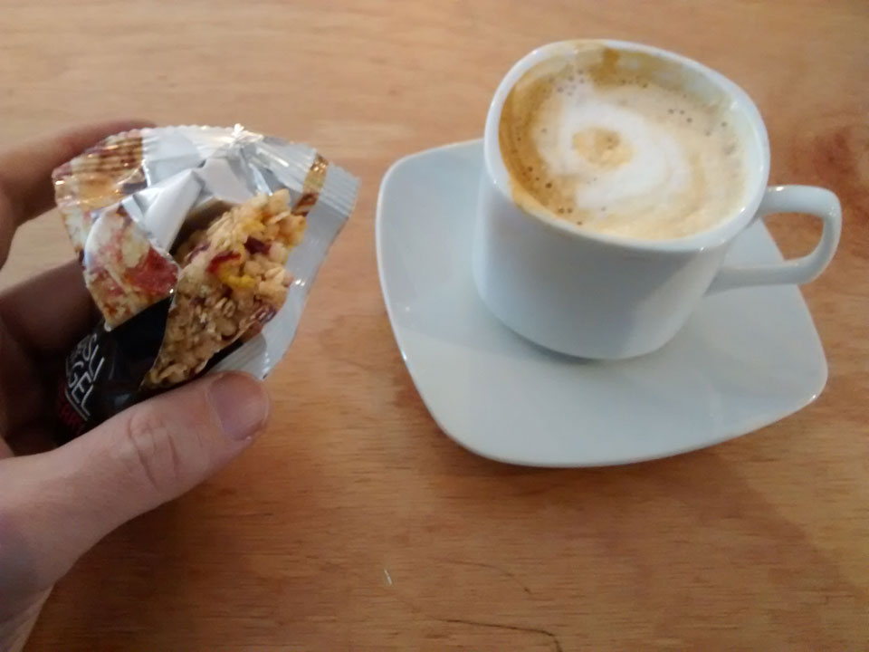Ganz schön Hangover heute wegen der gestrigen Nacht. Viele Leute hatten ausgecheckt, doch der Nachschub kam schon in’s Zimmer. Ich holte mir ’nen Cappuccino in der Bar und mampfte zwei Müsliriegel dazu.