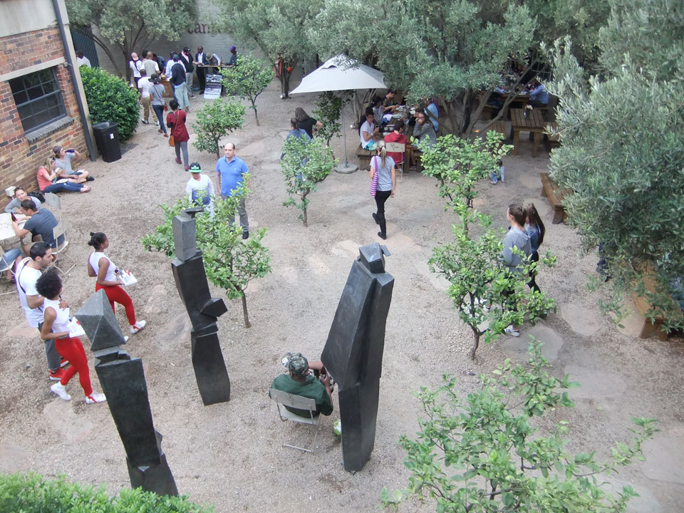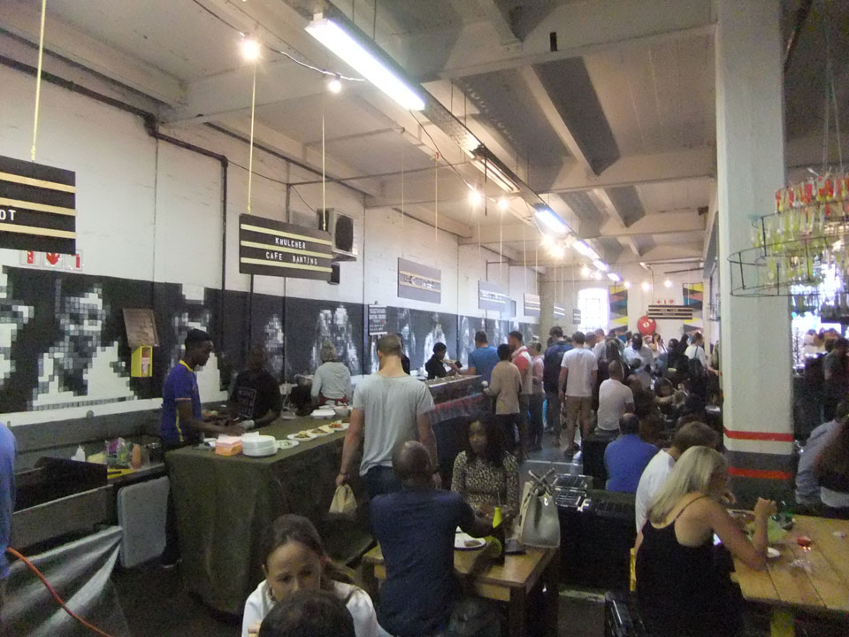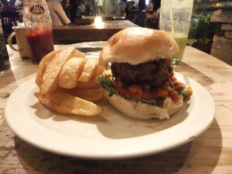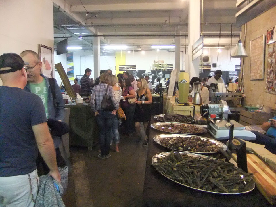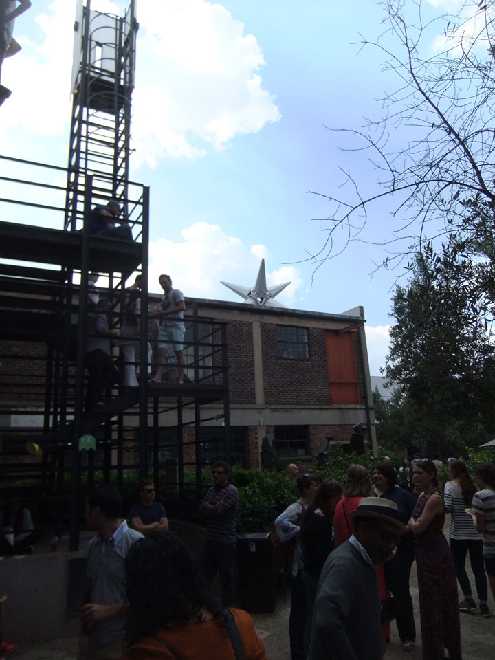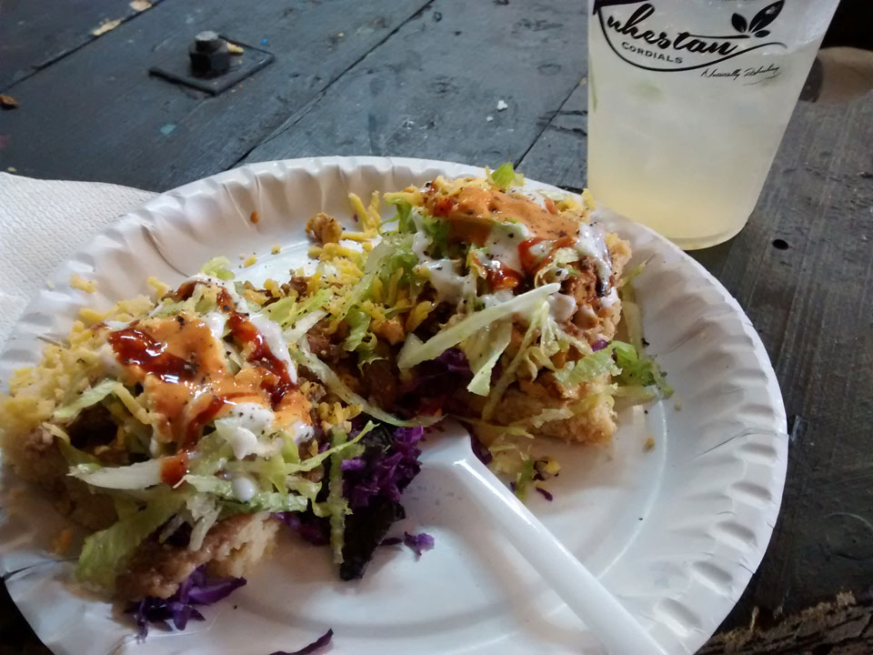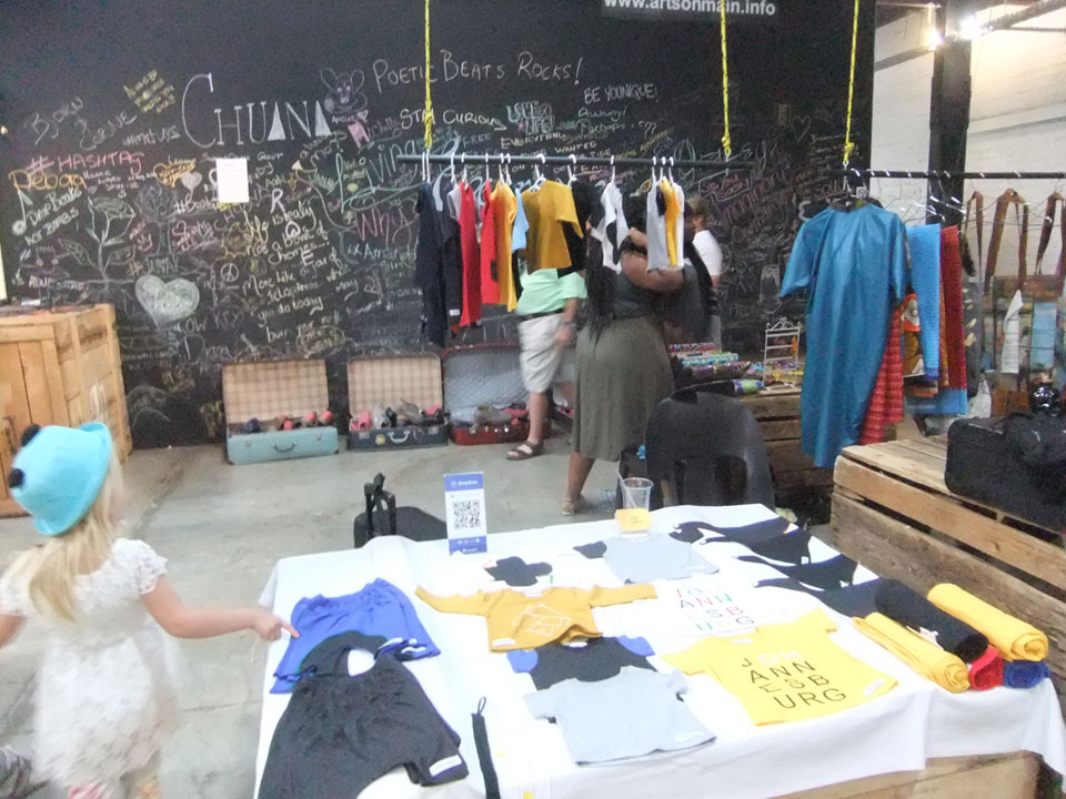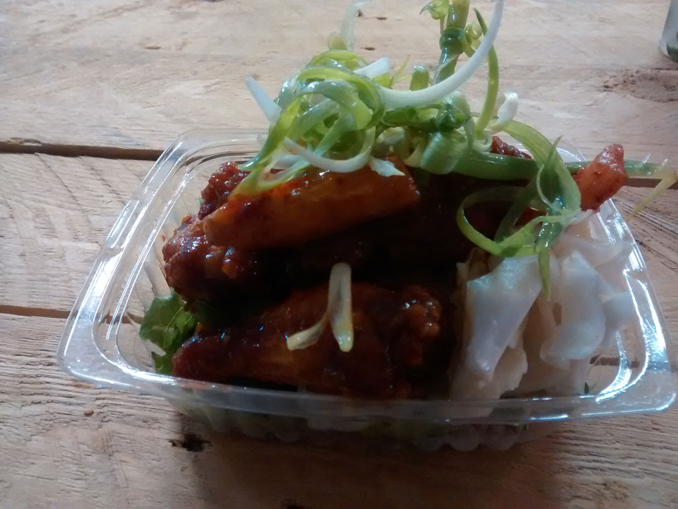 Dann ging’s raus bei schönem Wetter auf die Straße. Ist echt nett hier mit einigen Leuten auf der Straße zum Sonntag. Schöne Atmosphäre mit Straßenmarkt, REstaurants, Musik und Sonne. Im „Market on Main“ war heute der Essensmarkt. Ich holte mir erst ein koreanisches Huhn, dann noch was afrikanisches. Echt super Essen, Musik und auch Kunst oben. Die T-Shirts sahen auch cool aus, kosteten aber um die €20 – etwas zu viel. Nette Gegend, nette Leute – alles bunt gemischt.