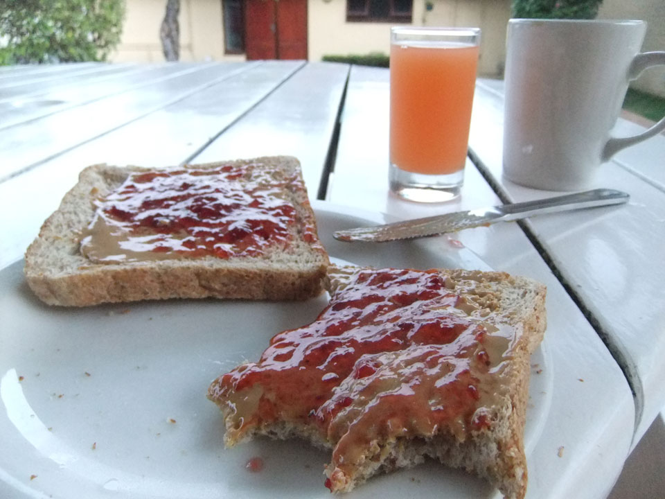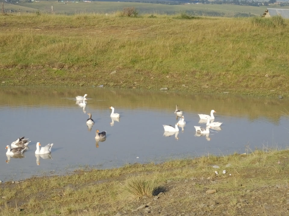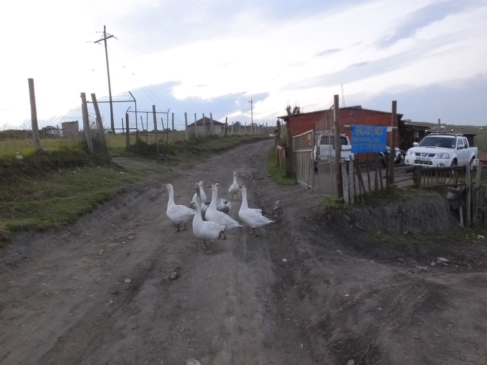 In Coffee Bay wurden wir schließlich alle heraus gelassen. Die ersten im Sugar Loaf, ich als Zweiter und Einziger am Eagle’s Nest. Ich spazierte den Berg hoch, wurde von Gänsen unfreundlich begrüßt. Ich bekam mein Zimmer und war erst mal gar nicht zufrieden. Das sah alles etwas zu hippie aus und ich war auch zu weit weg vom Schuss. Die Besitzer sprachen Deutsch, das Mädel war Deustche, ihr Freund wohl etwas woanders her.