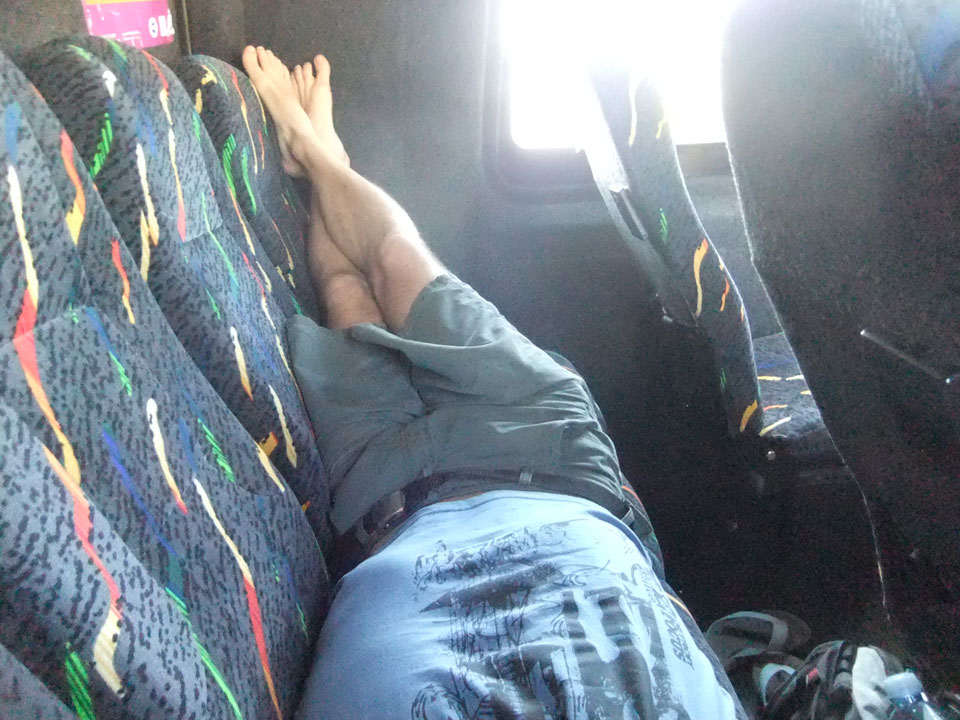 Der Bus war wieder nur wenig gefüllt und ich schnappte mir die komplette Rückbank, legte mich hin. Bei den Straßen gab’s orgendliches Gewackel und auch am und zu Airtime bei Schwellen. Insgesamt also weniger Schlafmöglichkeiten als ich hoffte.