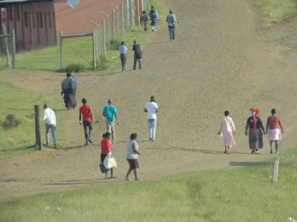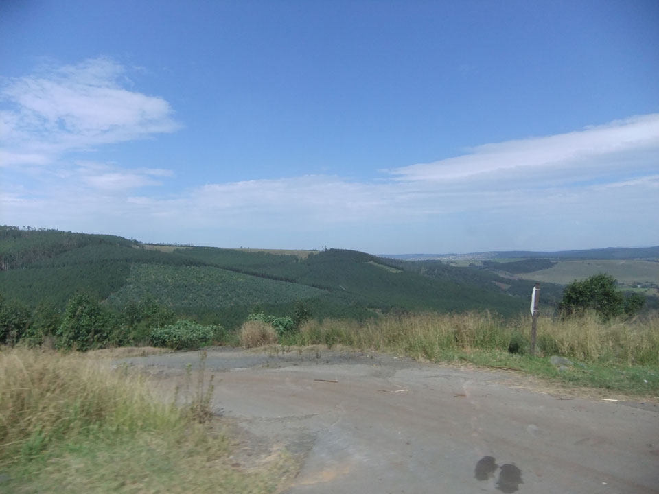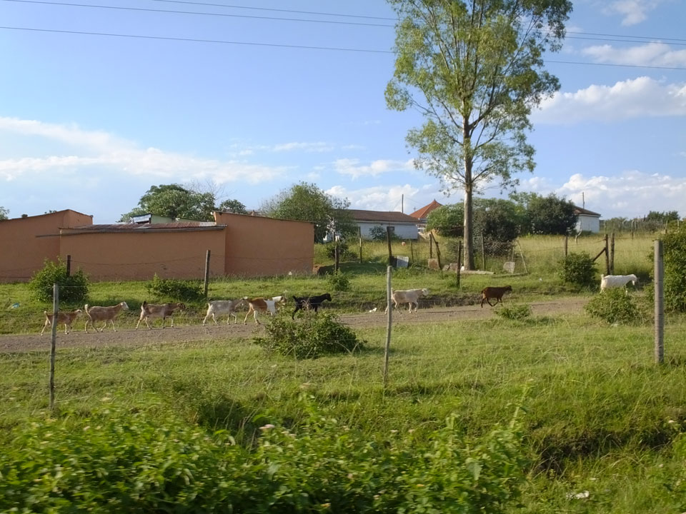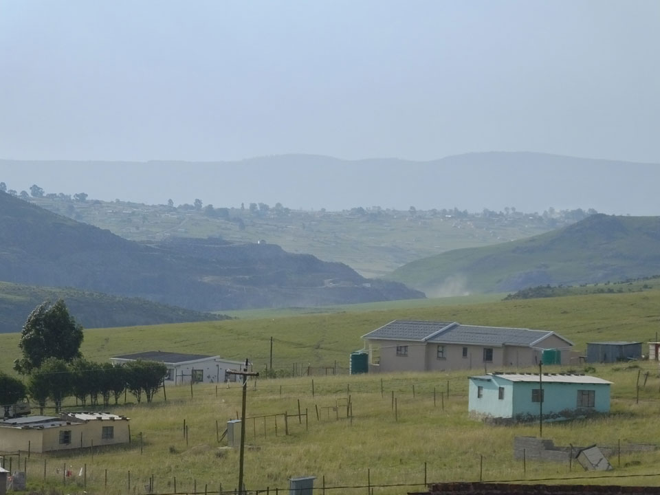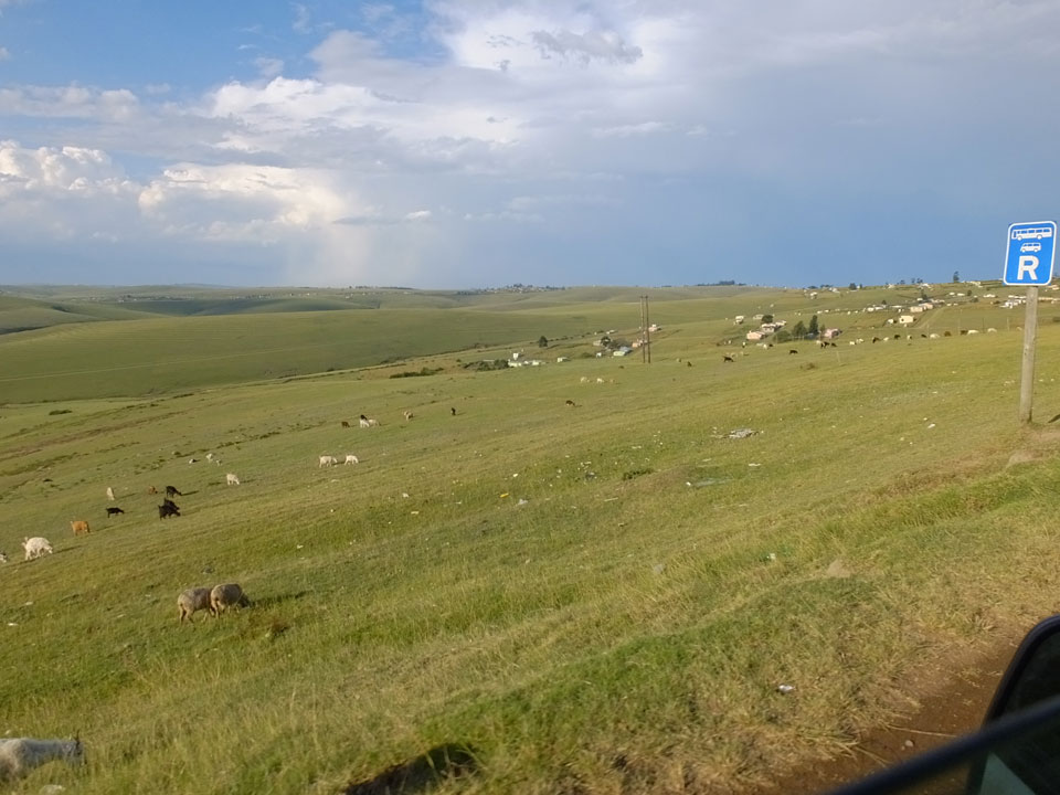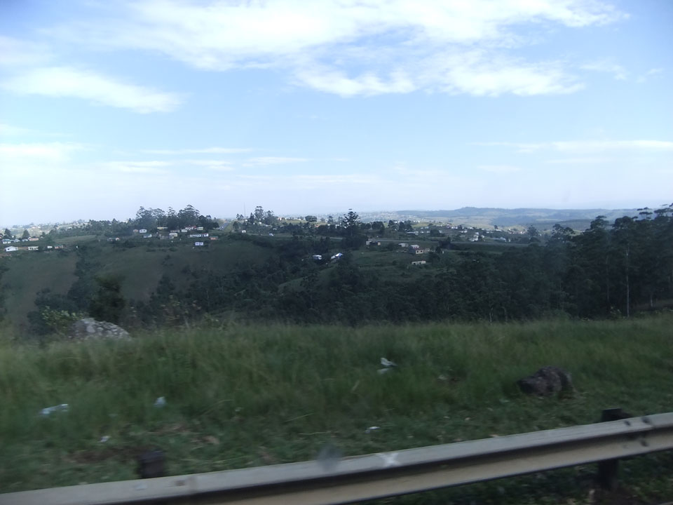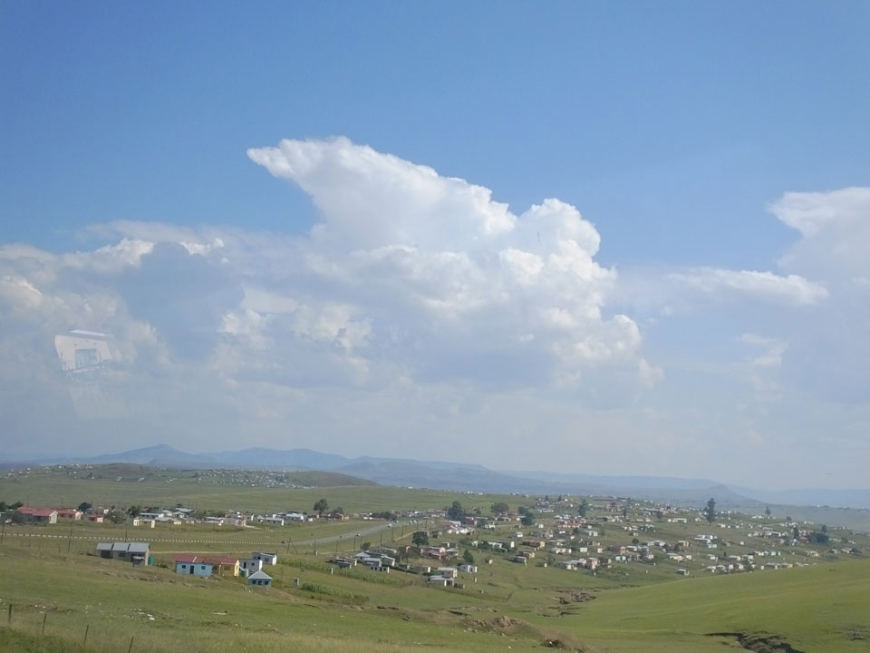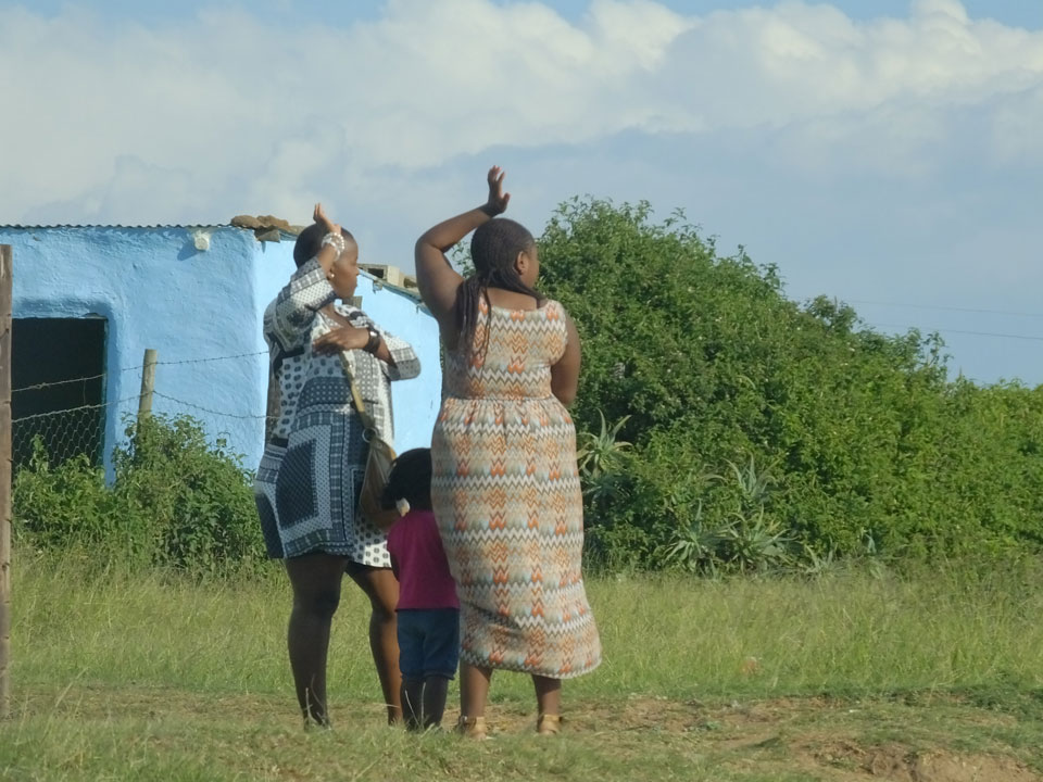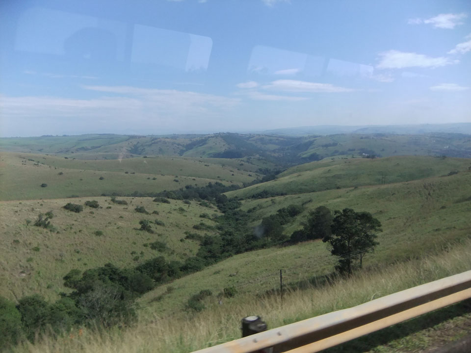 Die gute Aussicht auf die Straße nutzte ich mit der Camera. Wir mussten eine ganz andere Route durch die Berge fahren, weil es Straßenblockaden gibt und man da nicht durch kommt. Proteste bringen den Verkehr zu erliegen. So dauerte die Fahrt einige Stunden mehr, als gedacht. Man sah hier mal richtig das südafrikanische Dorfleben. Die Schüler sehen fein herausgeputzt aus und wandern wohl Kilometer von der Schule nach Hause. In einigen heruntergekommenen Pickups stapeln sich die Leute. Manch einer winkte und auch eine Junge fuhr außerhalb des Pickups mit.