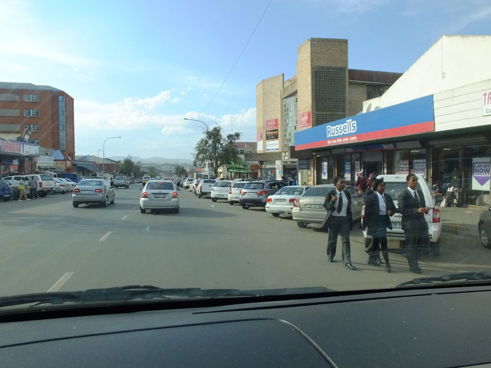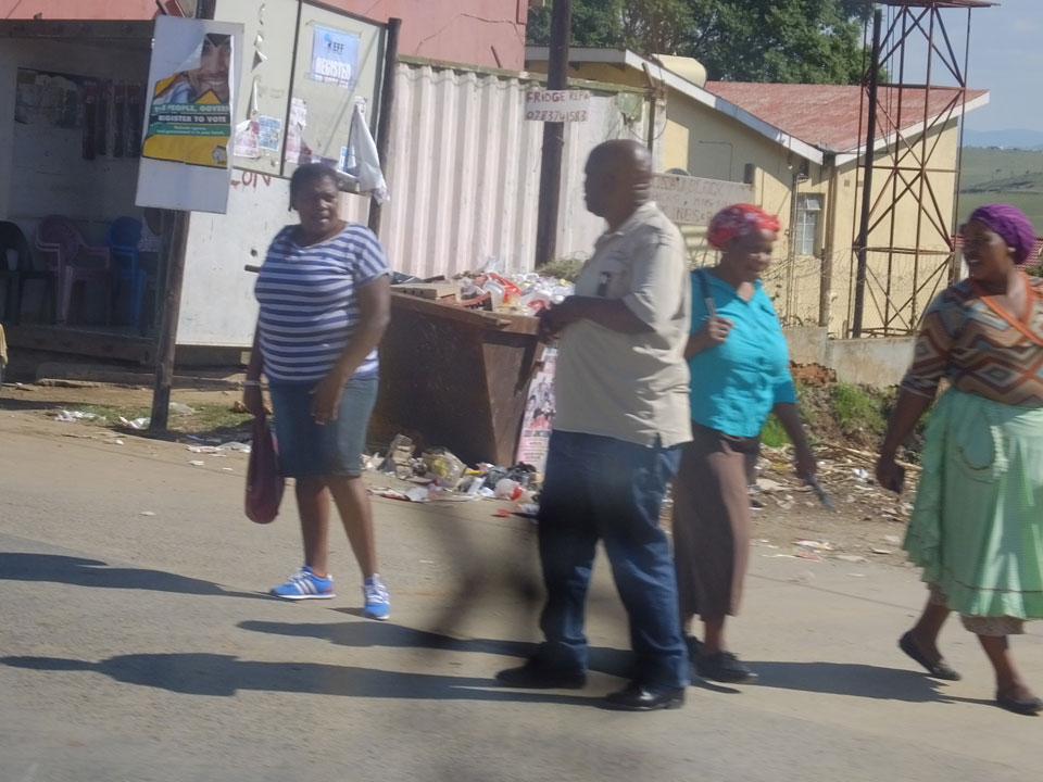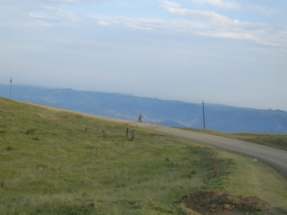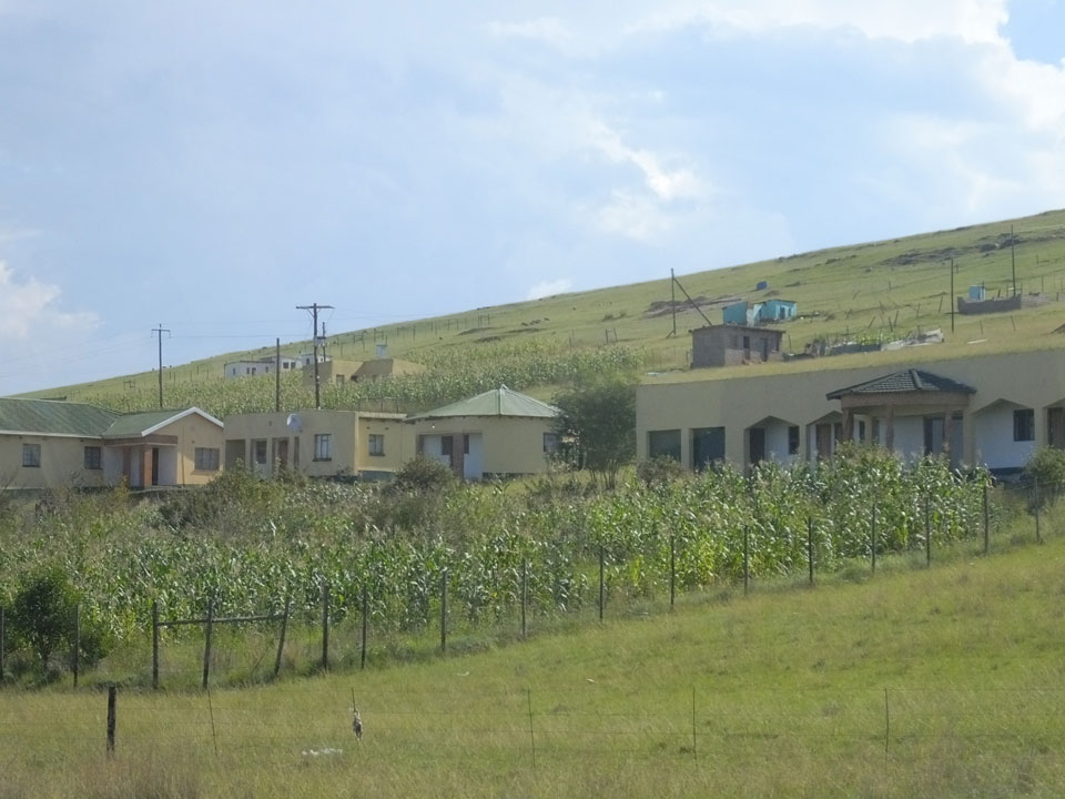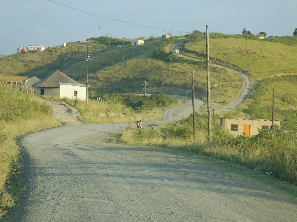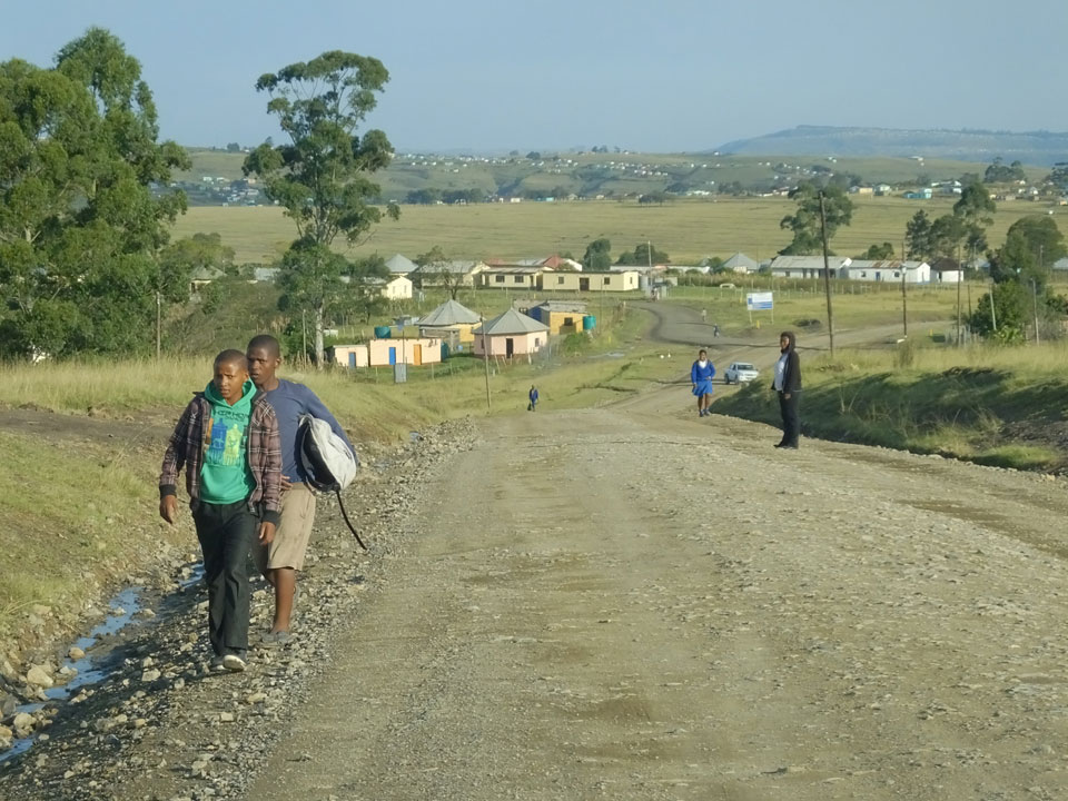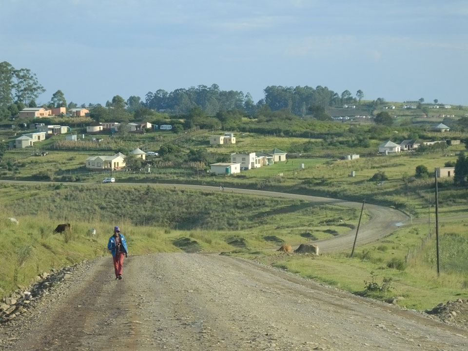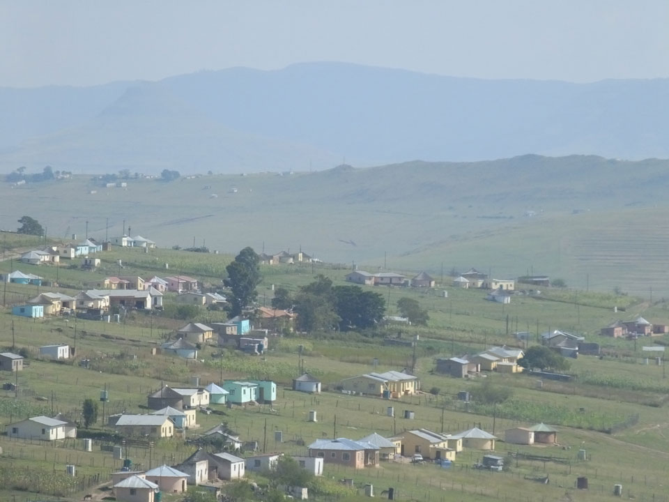 Die gute Aussicht auf die Straße nutzte ich mit der Camera. Wir mussten eine ganz andere Route durch die Berge fahren, weil es Straßenblockaden gibt und man da nicht durch kommt. Proteste bringen den Verkehr zu erliegen. So dauerte die Fahrt einige Stunden mehr, als gedacht. Man sah hier mal richtig das südafrikanische Dorfleben. Die Schüler sehen fein herausgeputzt aus und wandern wohl Kilometer von der Schule nach Hause. In einigen heruntergekommenen Pickups stapeln sich die Leute. Manch einer winkte und auch eine Junge fuhr außerhalb des Pickups mit.
