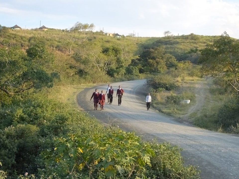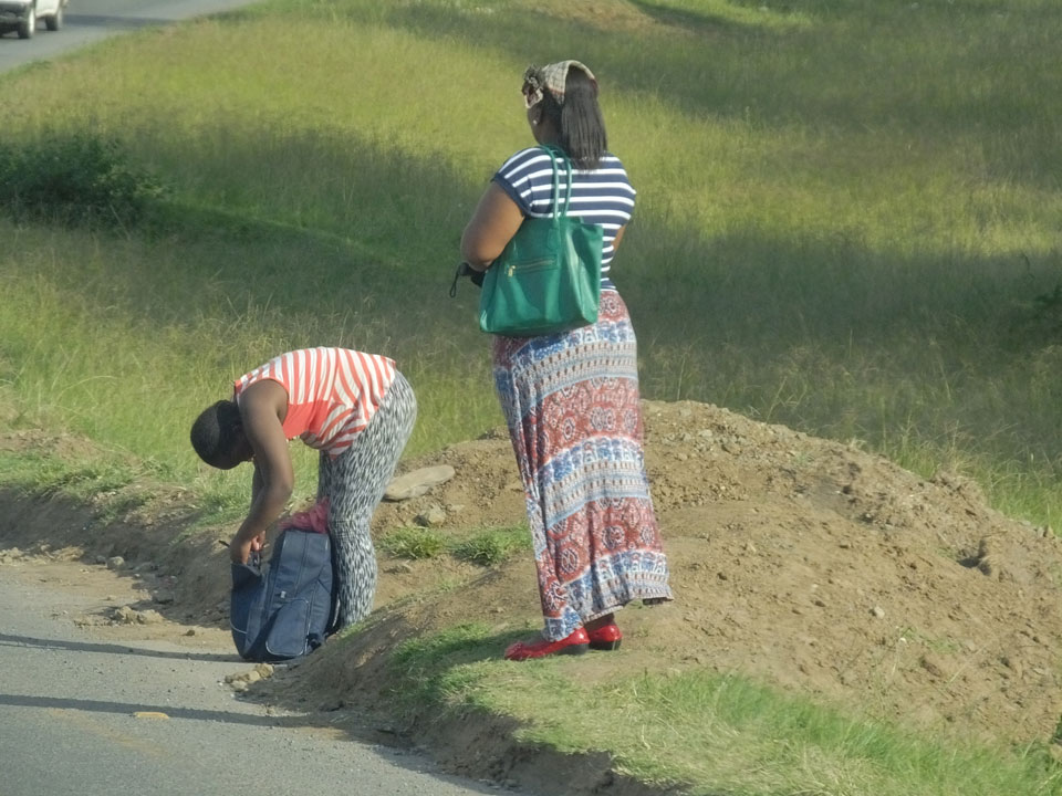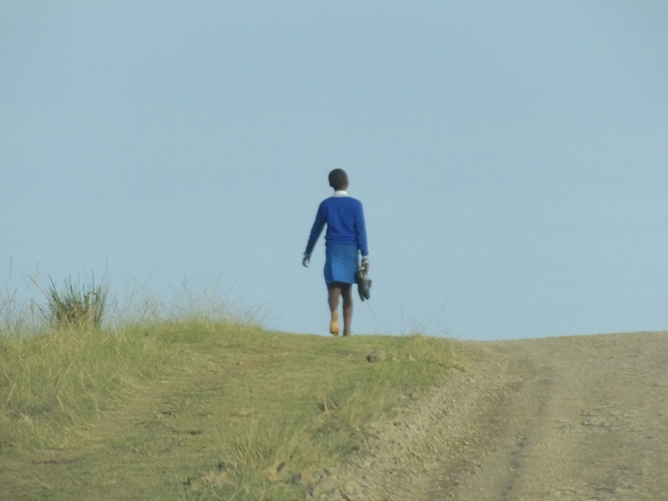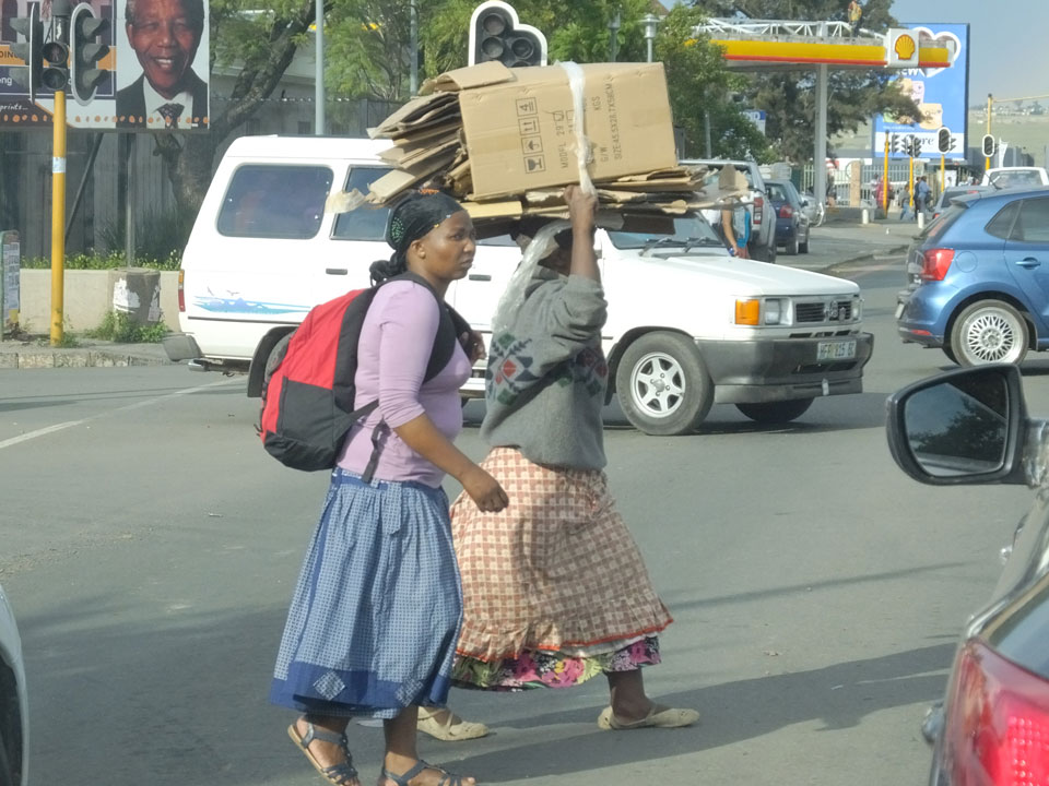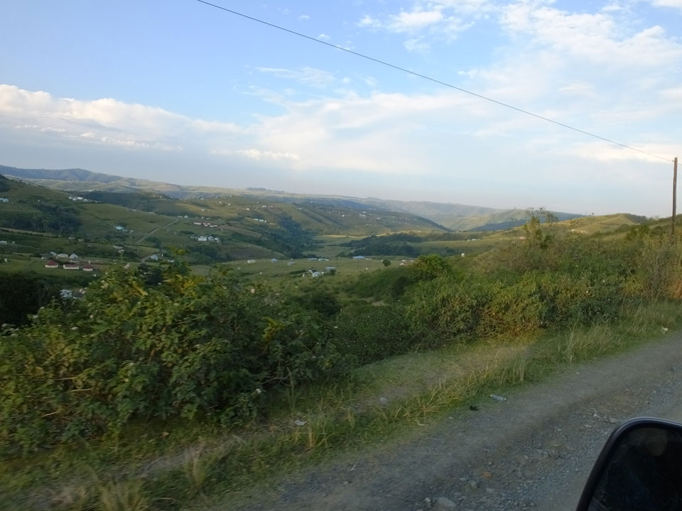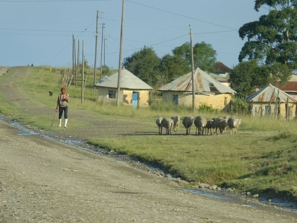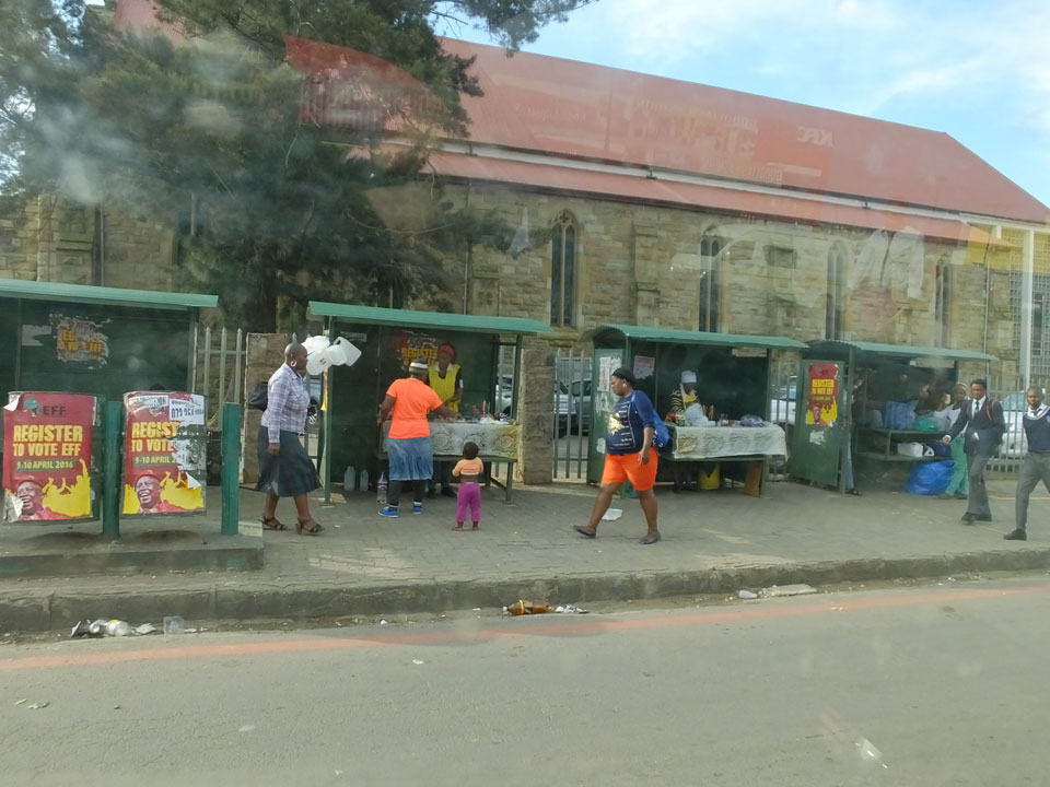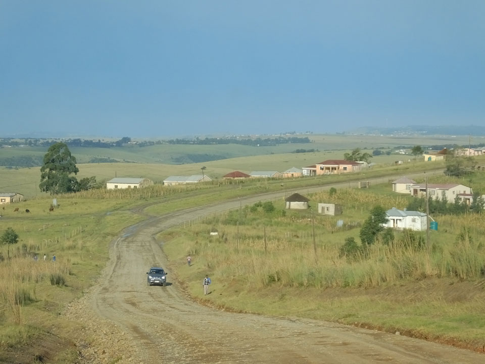 Die gute Aussicht auf die Straße nutzte ich mit der Camera. Wir mussten eine ganz andere Route durch die Berge fahren, weil es Straßenblockaden gibt und man da nicht durch kommt. Proteste bringen den Verkehr zu erliegen. So dauerte die Fahrt einige Stunden mehr, als gedacht. Man sah hier mal richtig das südafrikanische Dorfleben. Die Schüler sehen fein herausgeputzt aus und wandern wohl Kilometer von der Schule nach Hause. In einigen heruntergekommenen Pickups stapeln sich die Leute. Manch einer winkte und auch eine Junge fuhr außerhalb des Pickups mit.