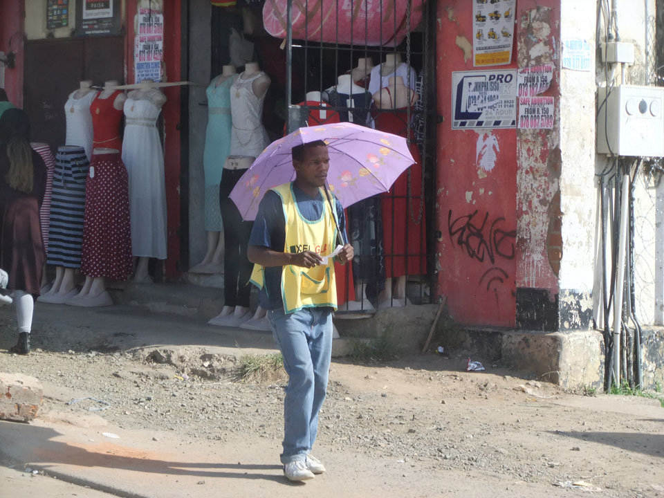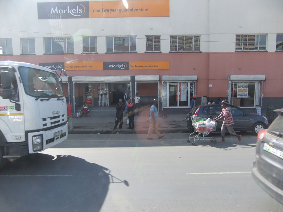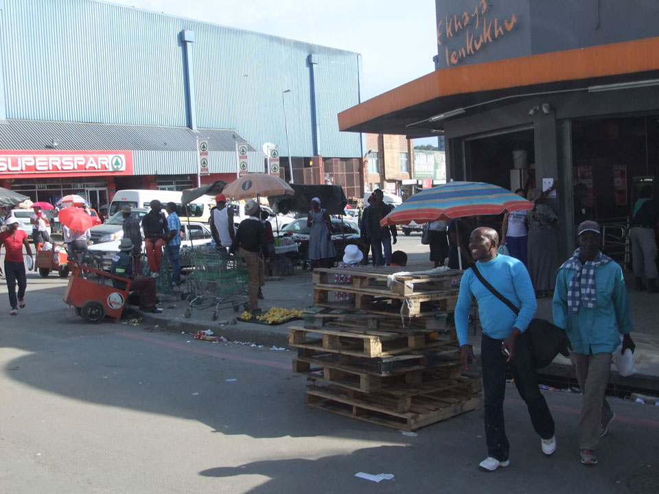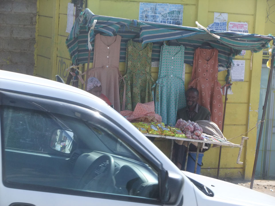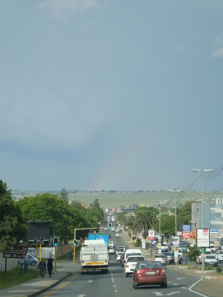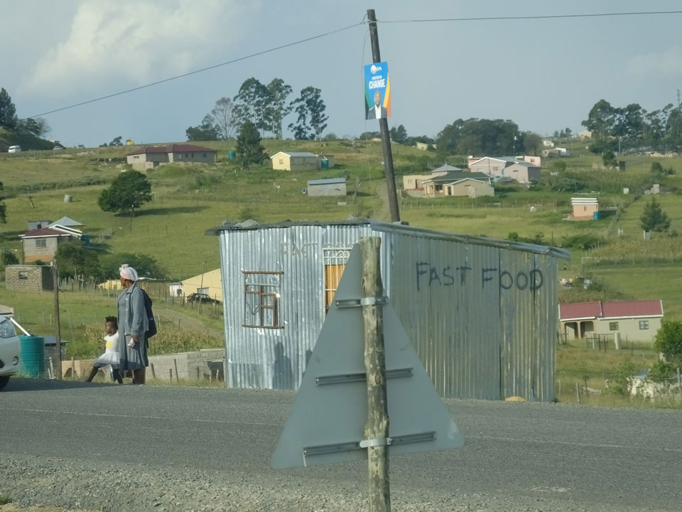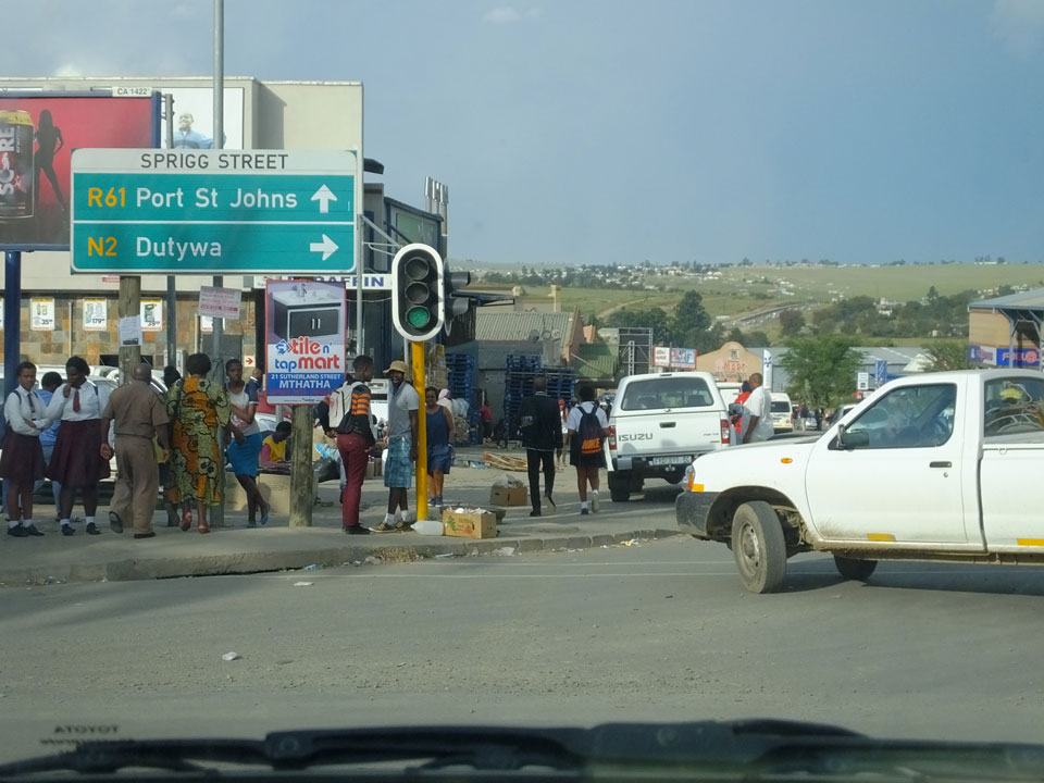 Schließlich kamen wir nach Mthatha. Bei der Fahrt in der Stadt sah ich mal eine richtig irre afrikanische Kleinstadt mit einem Haufen Leute auf der Straße. Leichtes Chaos, Friseur in einem Container – insgesamt kaum ein Touristenort für Weiße.