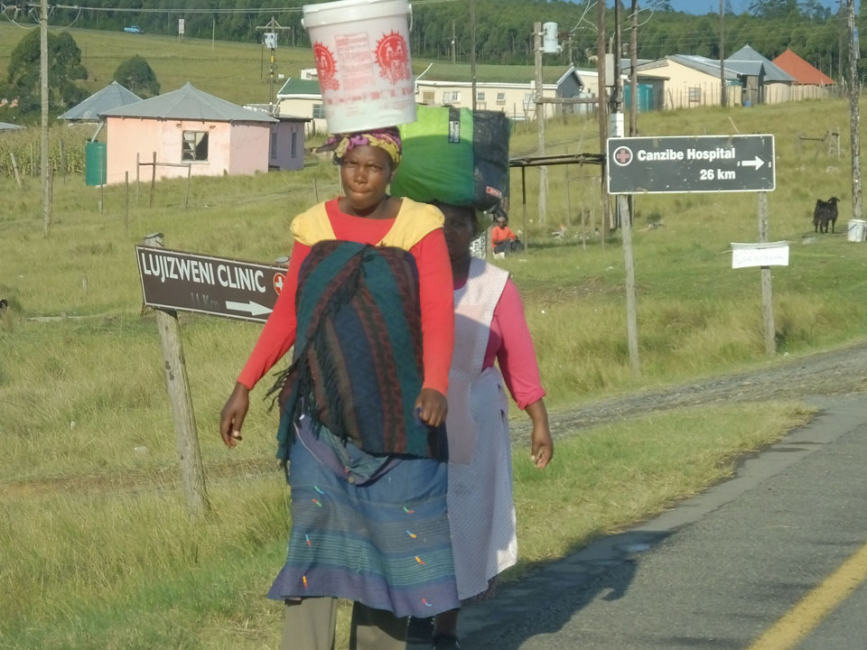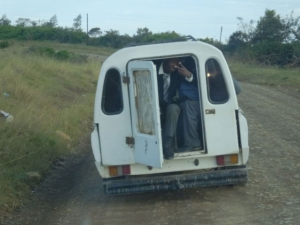 Besser als laufen ist das allemal, denn die Orte liegen weit auseinander. Laufen ist hier halt immer angebracht, mitunter mit Wassereimern auf dem Kopf oder Kindern auf dem Rücken. Am Straßenrand riefen die Kinder oft nach “Sweets”. Der Minibus wurde immer bestaunt, kommt wohl nicht so oft sowas hier vorbei.