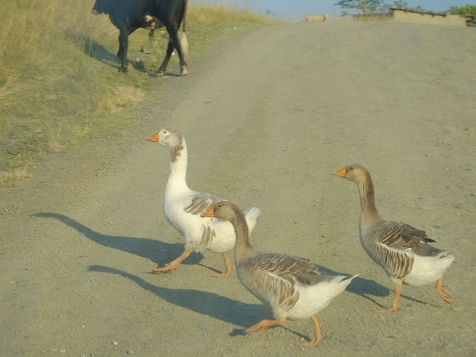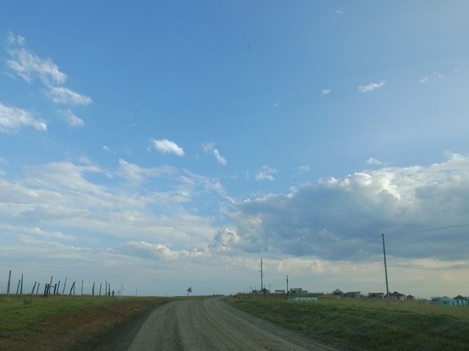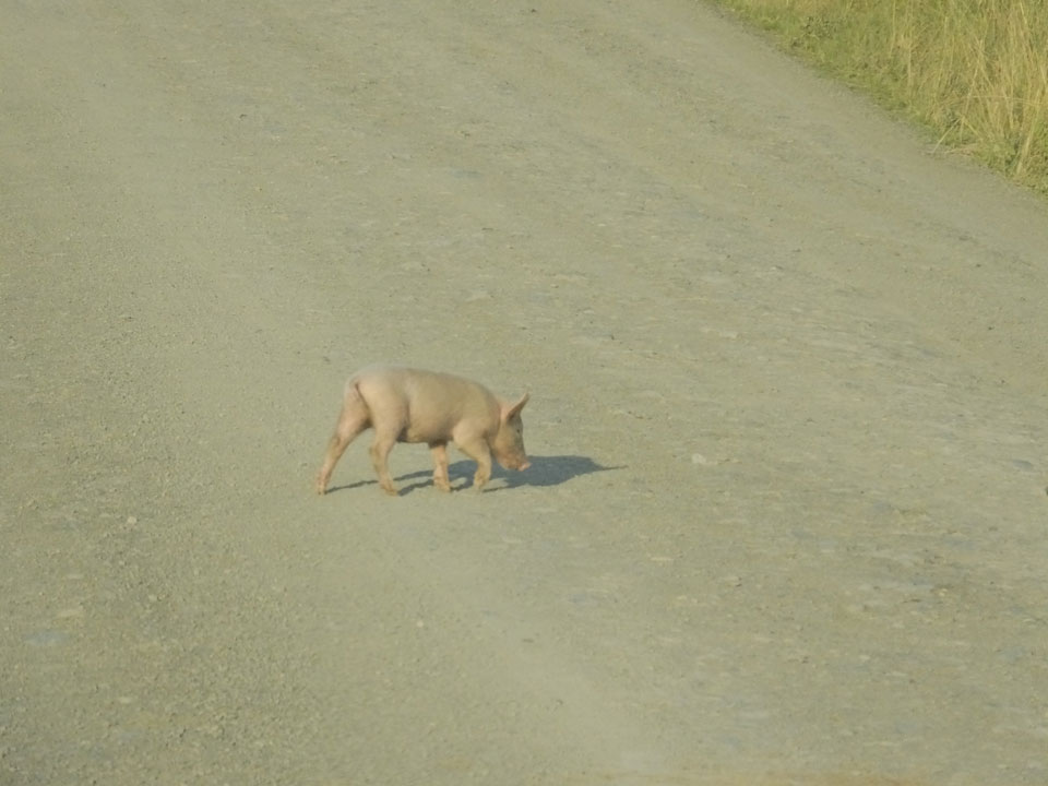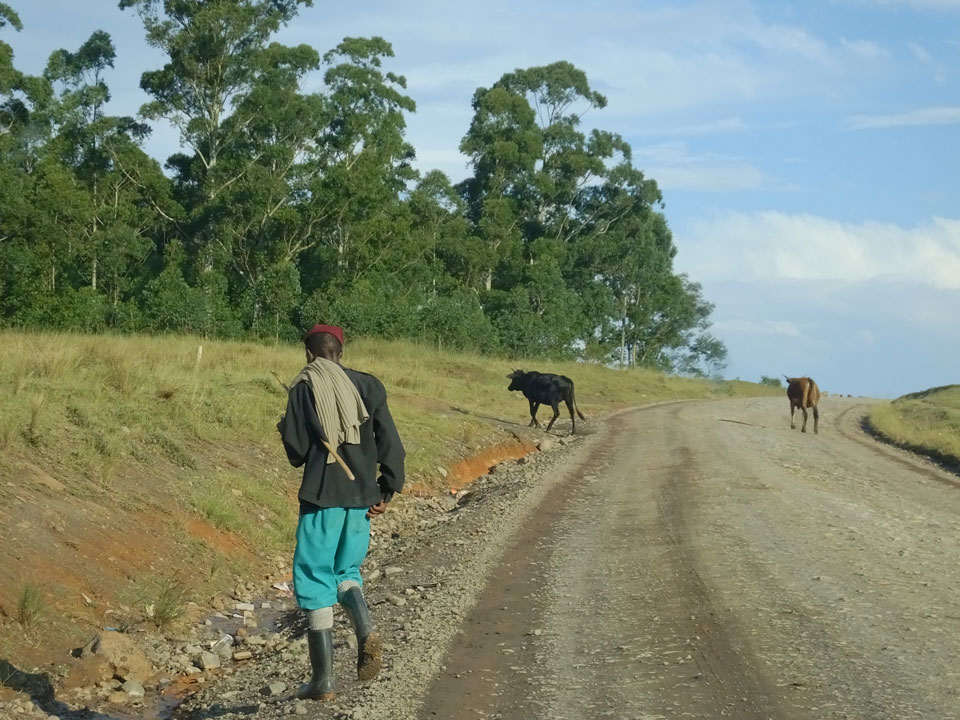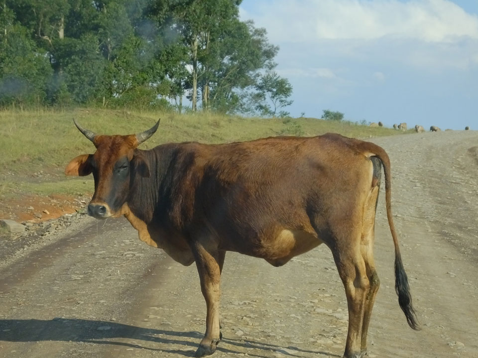 Weiterhin sah ich so ziemlich alle Nutztiere auf der Piste. Aufgrund Schlaglöchern ging es manchmal nur langsam voran. Zum Glück spielte das Wetter mit. Einige Autos am Wegesrand hatten Pech mit Reifen oder Autotechnik.
