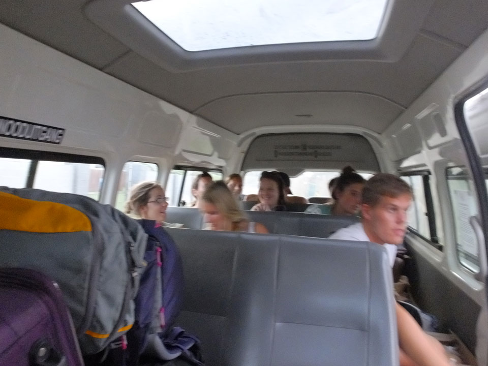 Das Timing vom BazBus war weniger perfekt. Am Taekweni Backpackers warteten wir eine Weile. Eine Schweizerin war auch in Burma, ihr Lieblingsland und schon drei Mal dort. Dann kamen andere mit der zweiten Fuhre vom Beach Backpackers, deren Bus eigentlich später fahren sollte. Schließlich warn die BazBusse doch da und ich traf alte Bekannte.