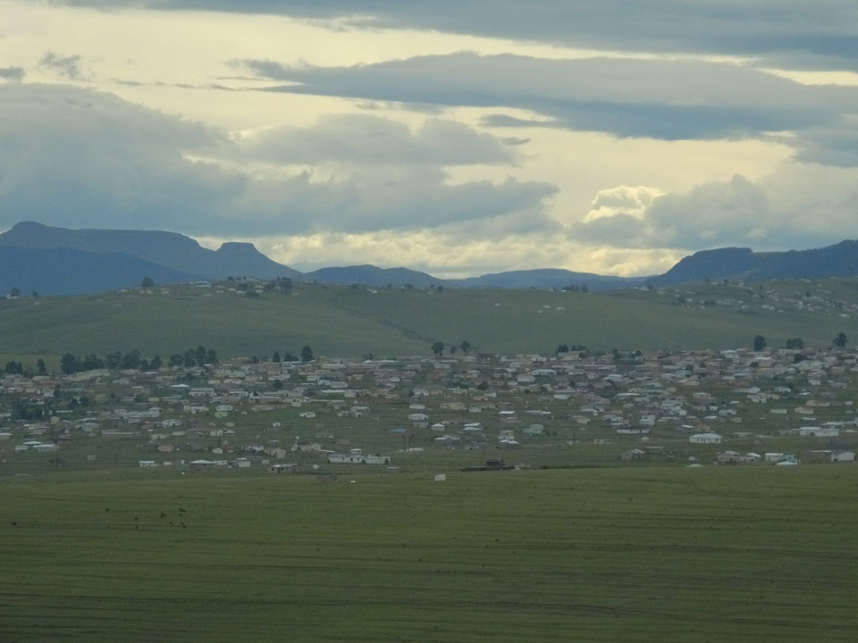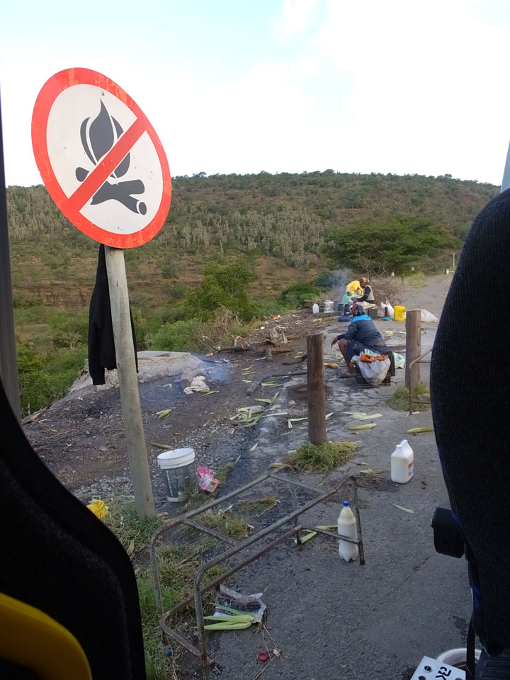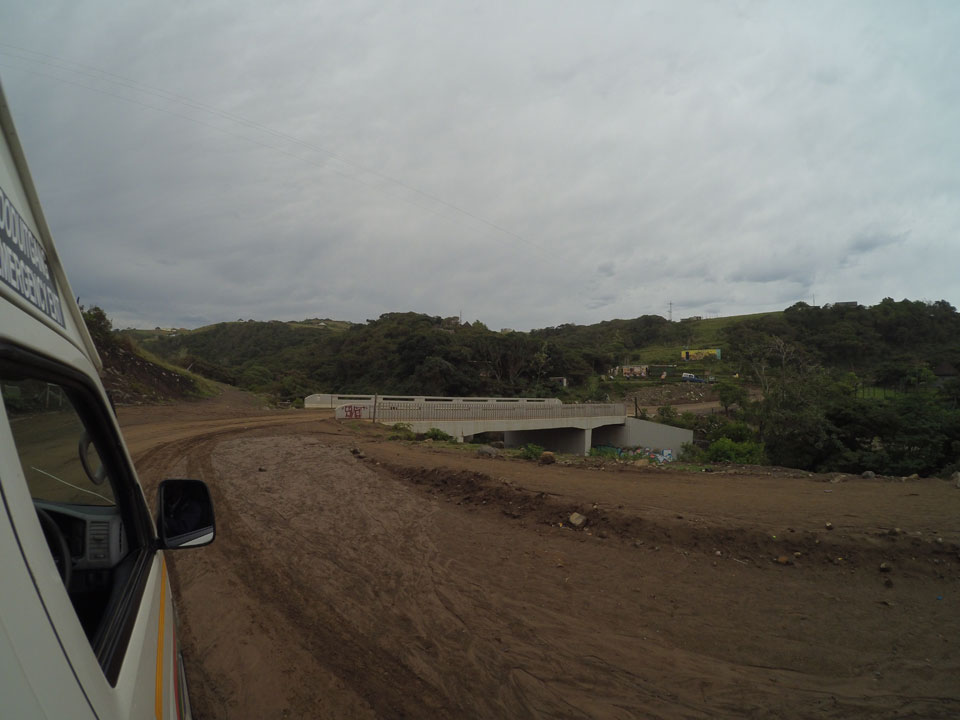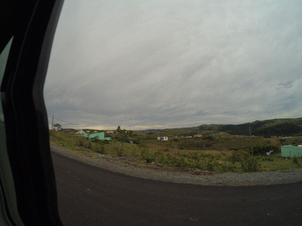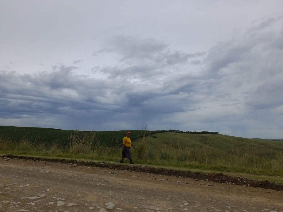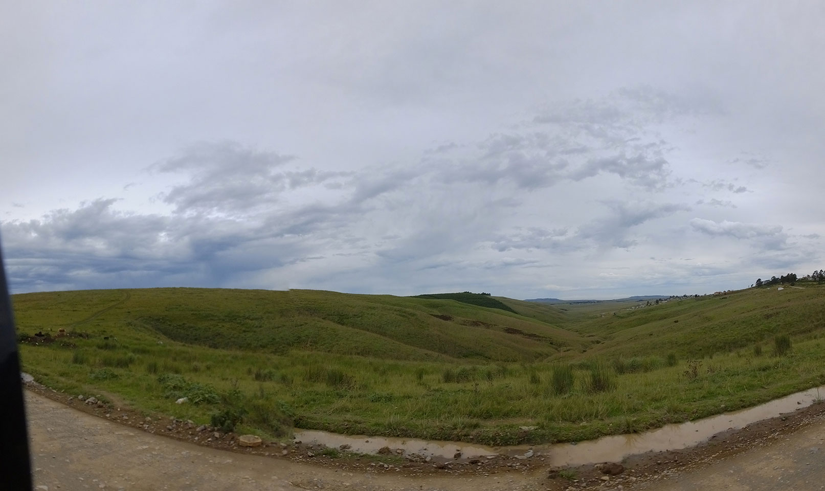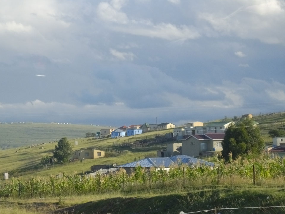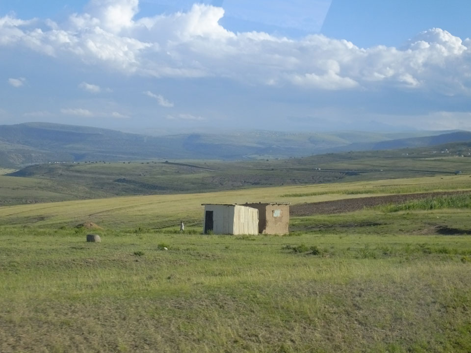 Die Köchin kam an und sagte allen sagte allen Wartenden, dass es noch 7 Minuten dauert. Ich denke mal, das Gas war ausgegangen. Die Uhr rückte immer näher auf 11 vor – der Abreise. Wegen Straßenblockaden geht es eine Stunde früher los, doch das Frühstück kam nicht. Schließlich ließ ich es mir „to go“ geben und saß damit im Minibus. Heute nur 3 Passagiere incl. mir. Ein Weißer aus Lesotho, der Zulu sprach. Schon cool, das ganze mal zu sehen – mit Klick und Schmatz-Sounds.