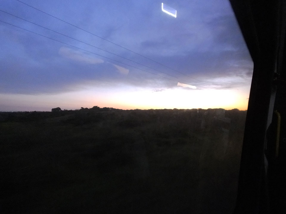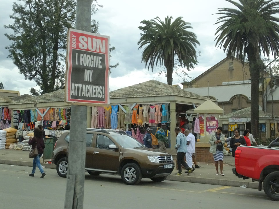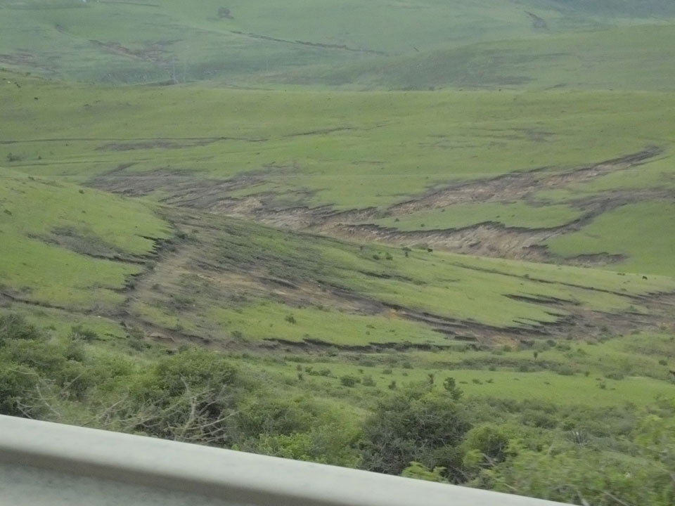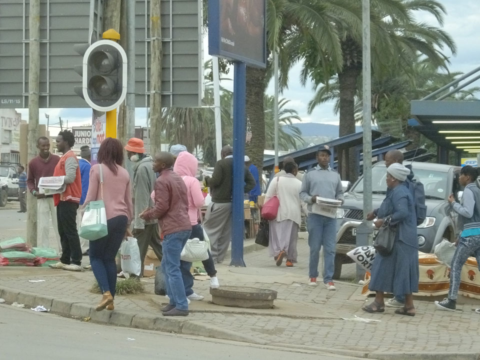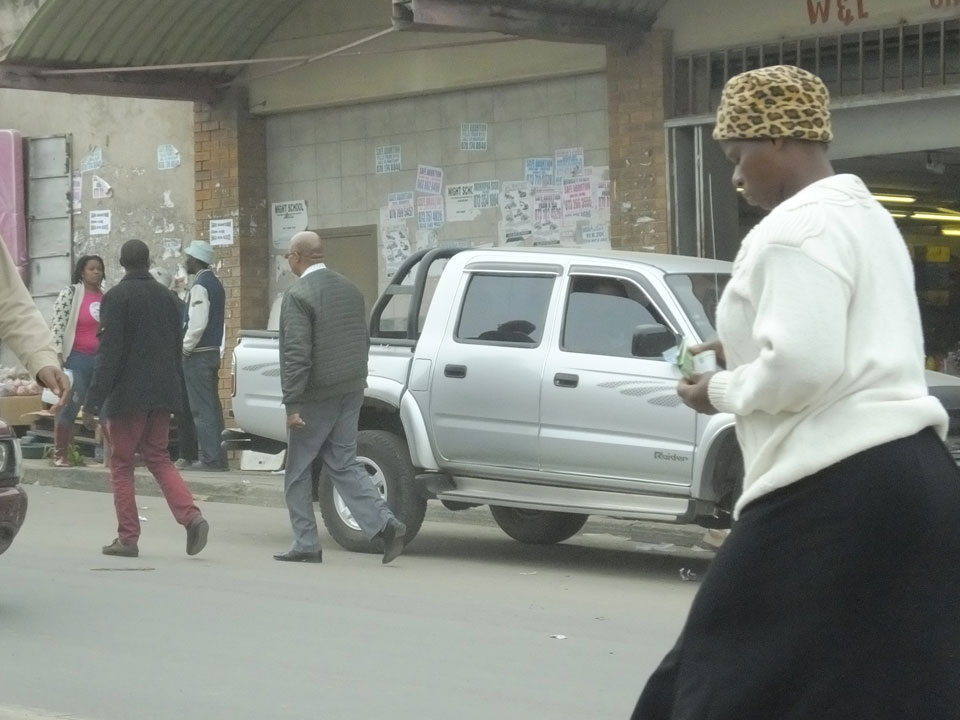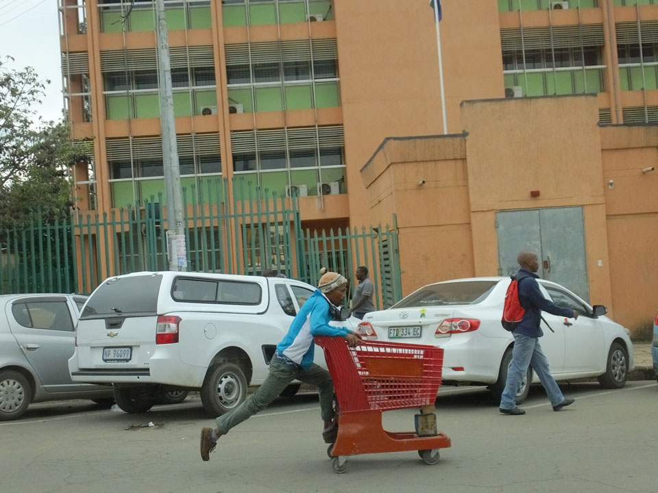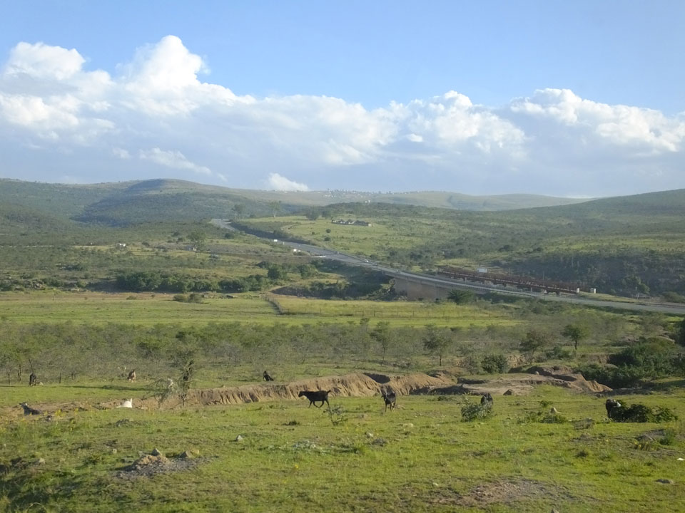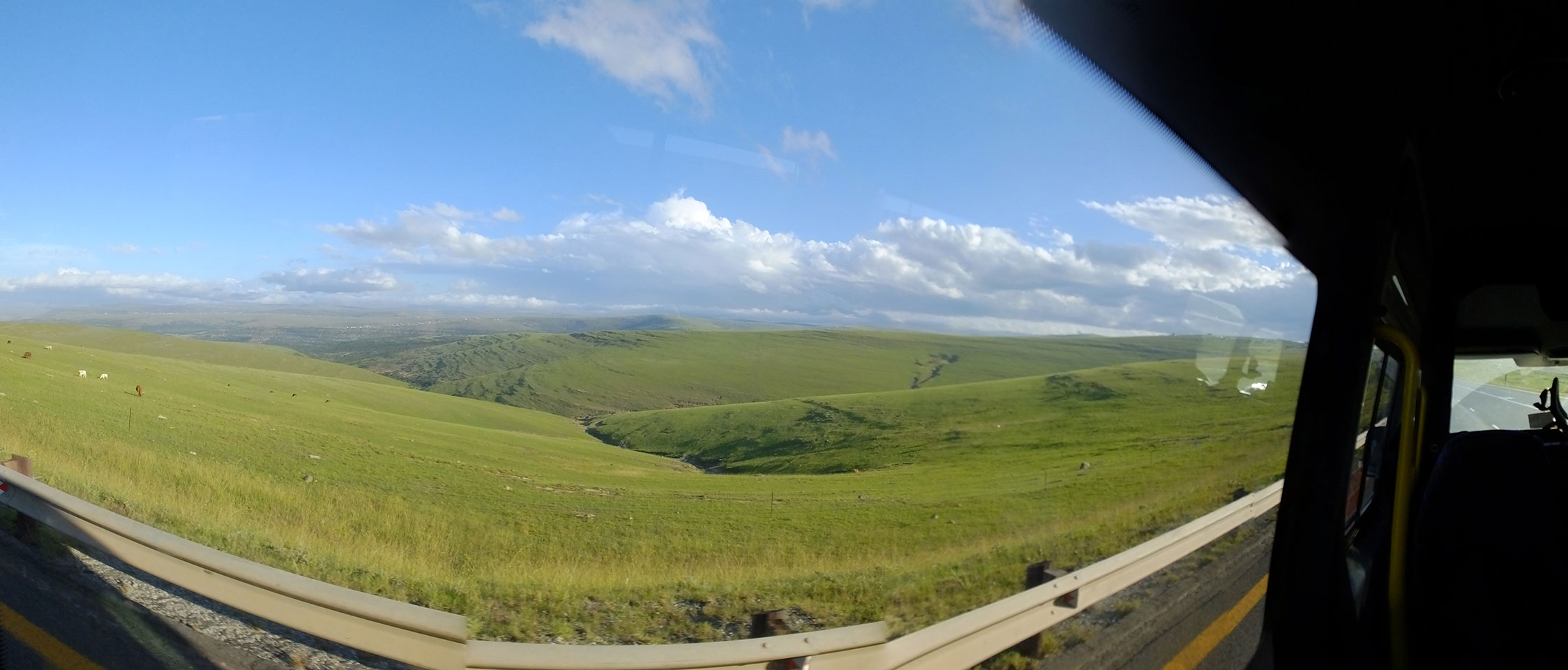 Die Köchin kam an und sagte allen sagte allen Wartenden, dass es noch 7 Minuten dauert. Ich denke mal, das Gas war ausgegangen. Die Uhr rückte immer näher auf 11 vor – der Abreise. Wegen Straßenblockaden geht es eine Stunde früher los, doch das Frühstück kam nicht. Schließlich ließ ich es mir „to go“ geben und saß damit im Minibus. Heute nur 3 Passagiere incl. mir. Ein Weißer aus Lesotho, der Zulu sprach. Schon cool, das ganze mal zu sehen – mit Klick und Schmatz-Sounds.