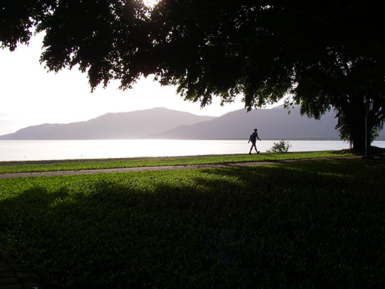 Endlich mal schönes Wetter. Gleich zum Morgen wanderte ich zurück in die Stadt. Entlang der Esplanade bei wunderschönem Sonnenschein waren auch die Jogger unterwegs. Ich aß zwei Scheiben Toast – Peanut Butter und eins mit Vegemite.