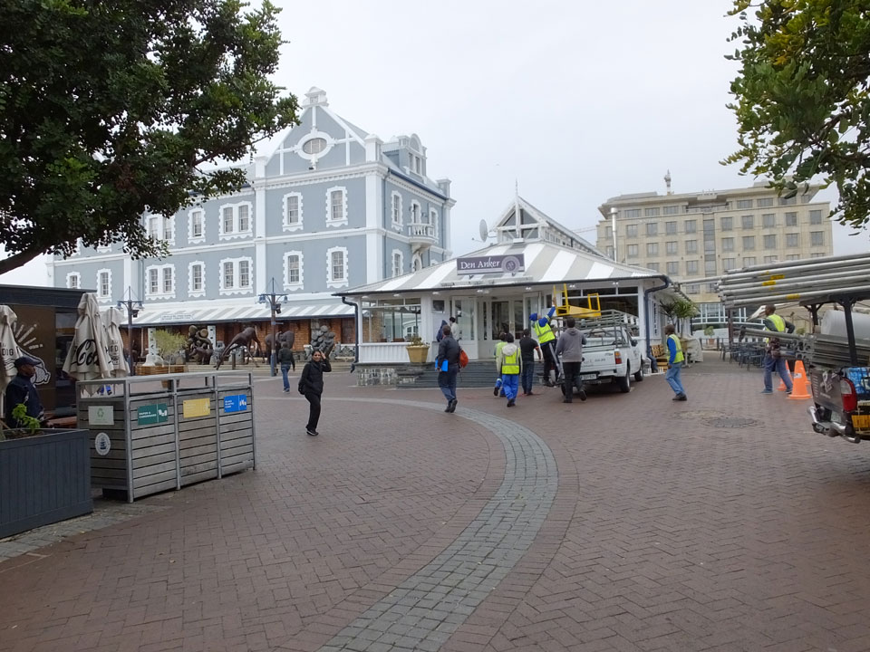Per Uber ging’s wieder los. Der Transport ist eigentlich zu billig, dass ich mich da schon unwohl fühle. Für €2 kommt man in 10-15′ Fahrt – wie soll sich das für den Fahrer lohnen? Das Ziel war die Robben Island Fähre um 13:00. Auch andere wollten da hin doch eine Enttäuschung: die Tour war ausverkauft. Gestern gab’s wohl wegen Seegang keine Tour, sodass die gestrigen Tickets auf heute umgebucht wurden. man könnte noch schauen, von Tourguides Tickets zu ergattern, weil ja selten alle Leute 100%ig anwesend sind, doch ich entschied mich für ein richtiges Frühstück.