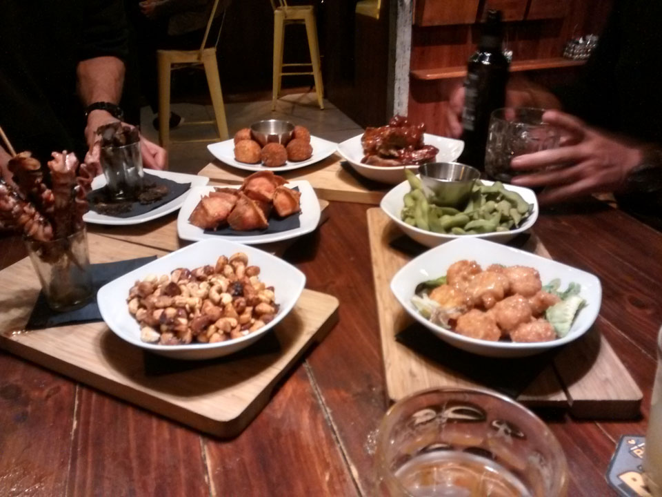 Im Food Market nebenan holten wir was gutes zu essen. Ich hatte ein paar Reisekumpels in’s Beer House eingeladen- 20:30. Bis dahin ließ ich mir meinen Burger zu Rotwein schmecken. Nettes chillen, leicht beschwippst ging’s dann los.