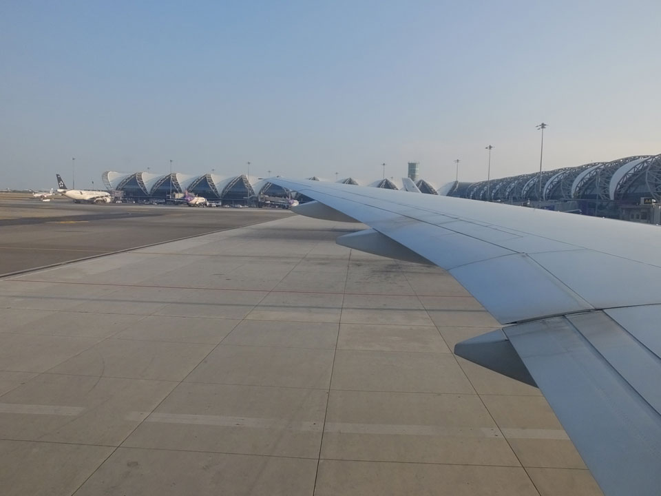 Auf ging’s zum Skytrain – 31 THB bis zur Umstiegsstation – dann nochmal 45 THB bis zum Flughafen. So kam ich quasi auch für €2 in einer reichlichen Stunde zurück nach Suvarnabhumi.