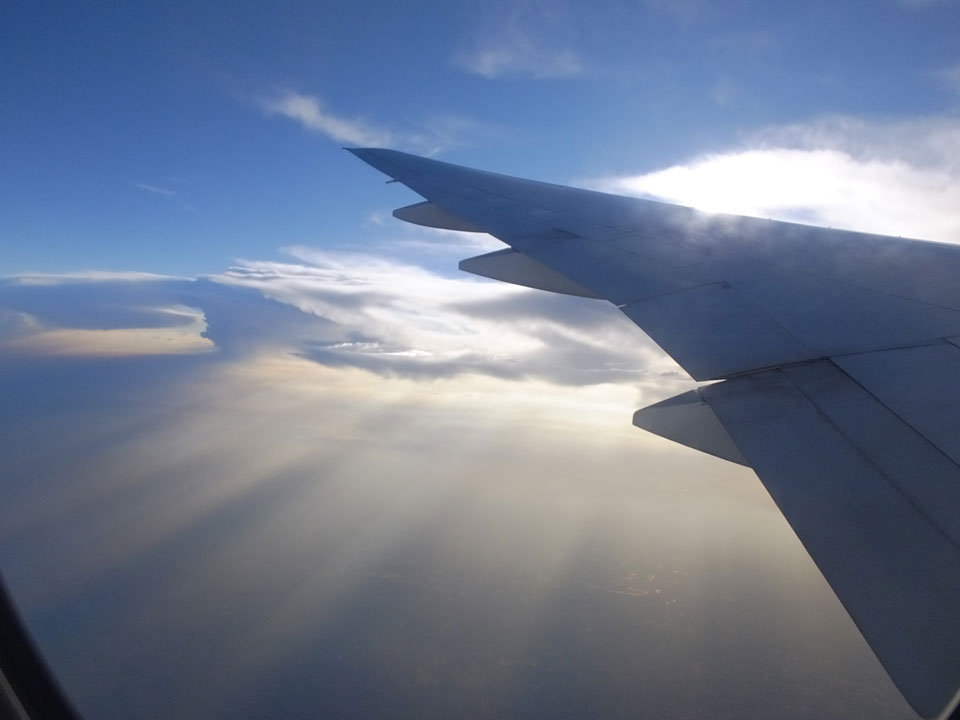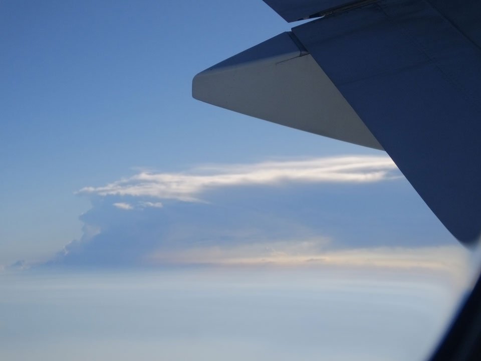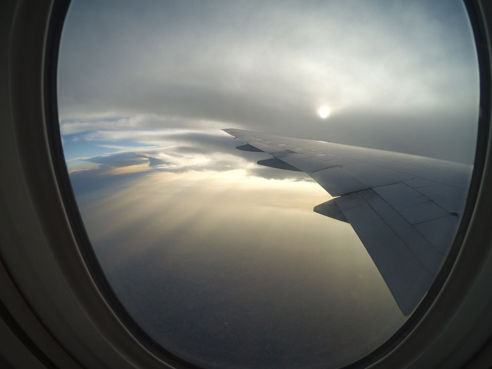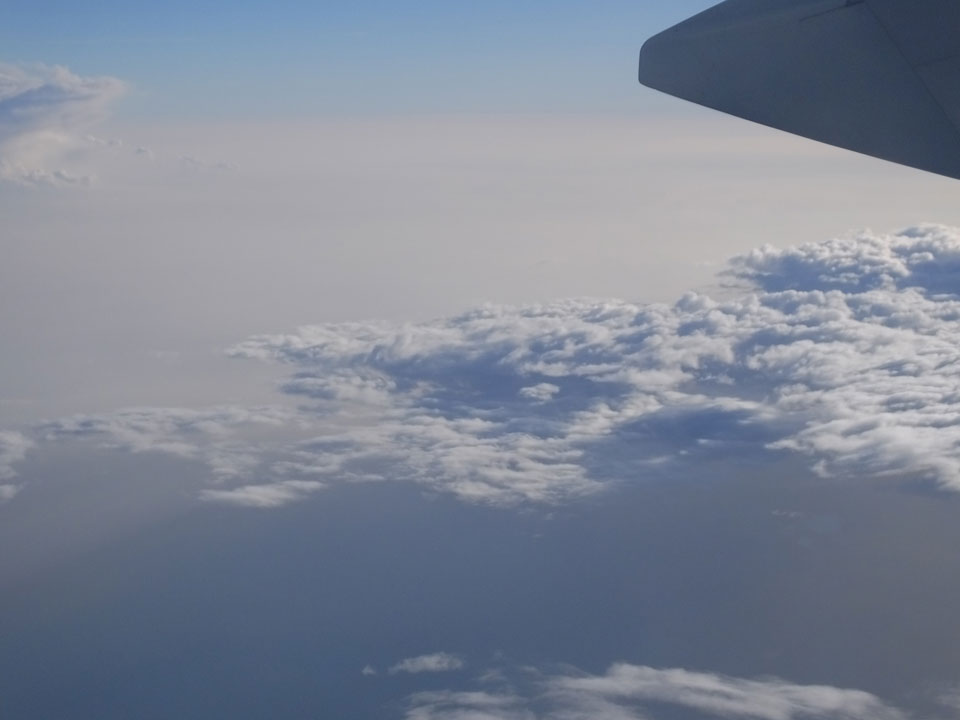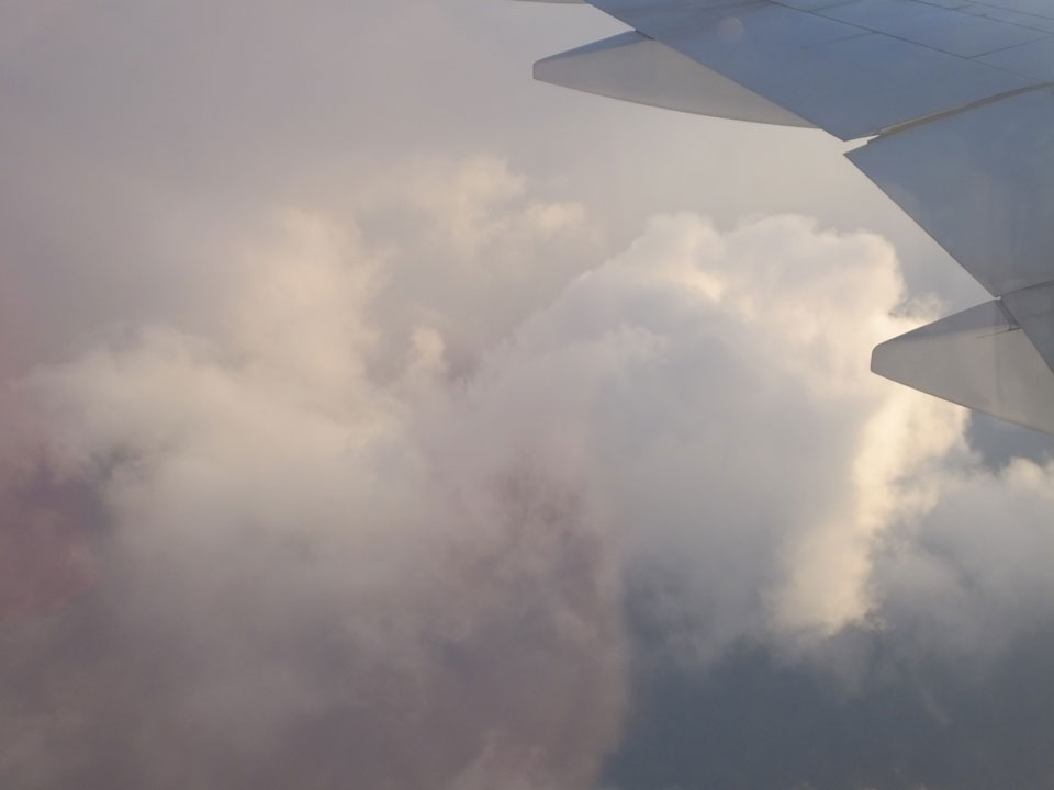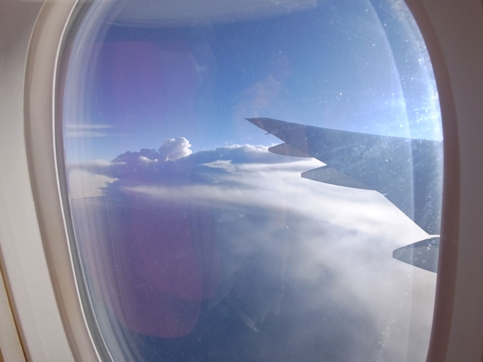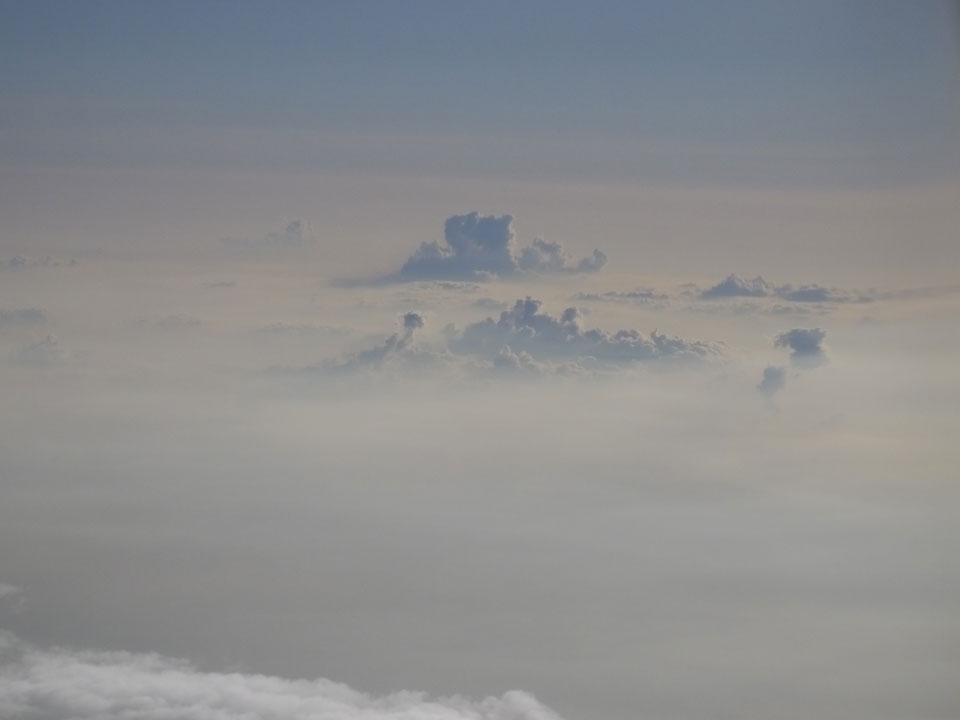 Der Flug war auch angenehm mit Sonne durch die Wolken. Zum Sonnenuntergang in Chiang Mai, dann mit dem Pick up Taxi für 50 THB zum Hotel. Dort will man direkt einen Van für mich nach Pai bestellen – 160 THB soll das nur kosten. Das Zimmer viel besser als in Bangkok. Hier oben im Norden ist eben alles nochmal biliger.