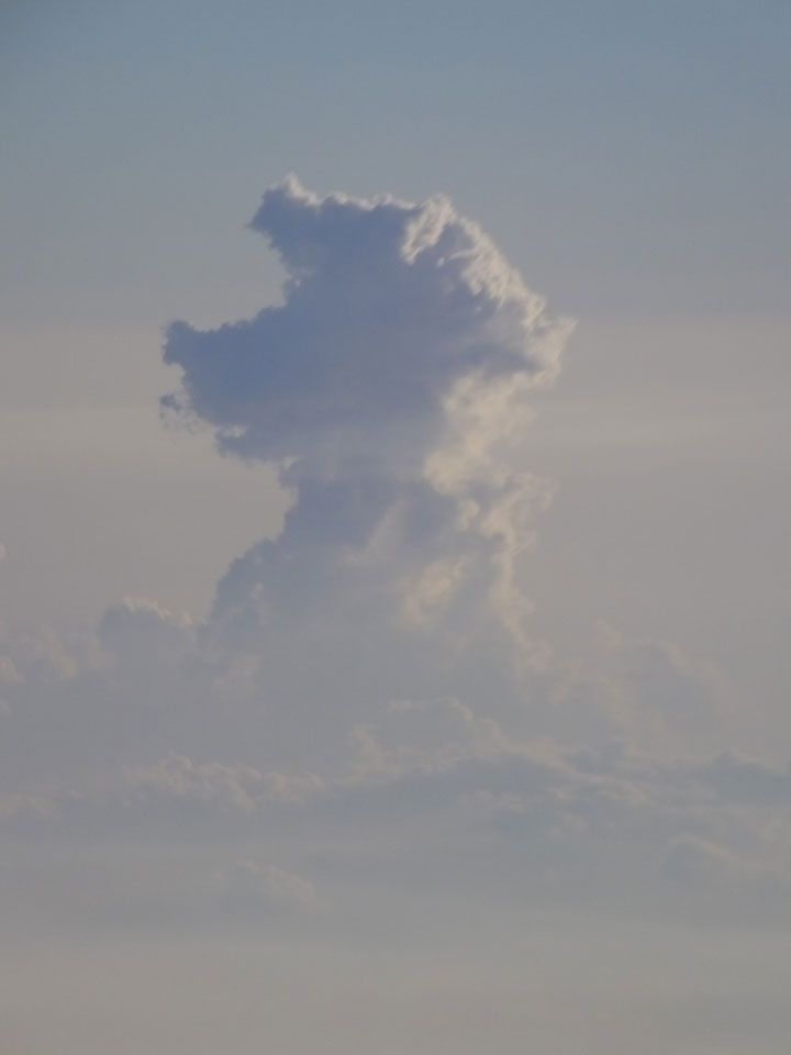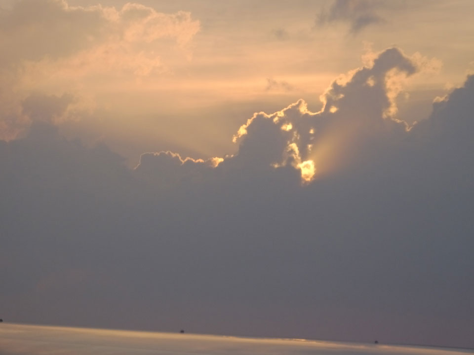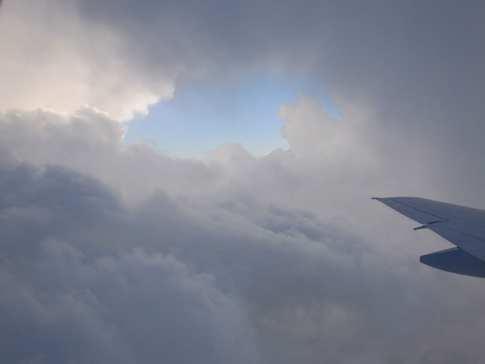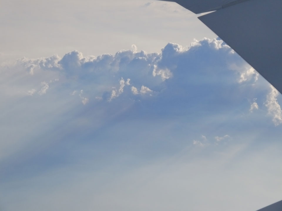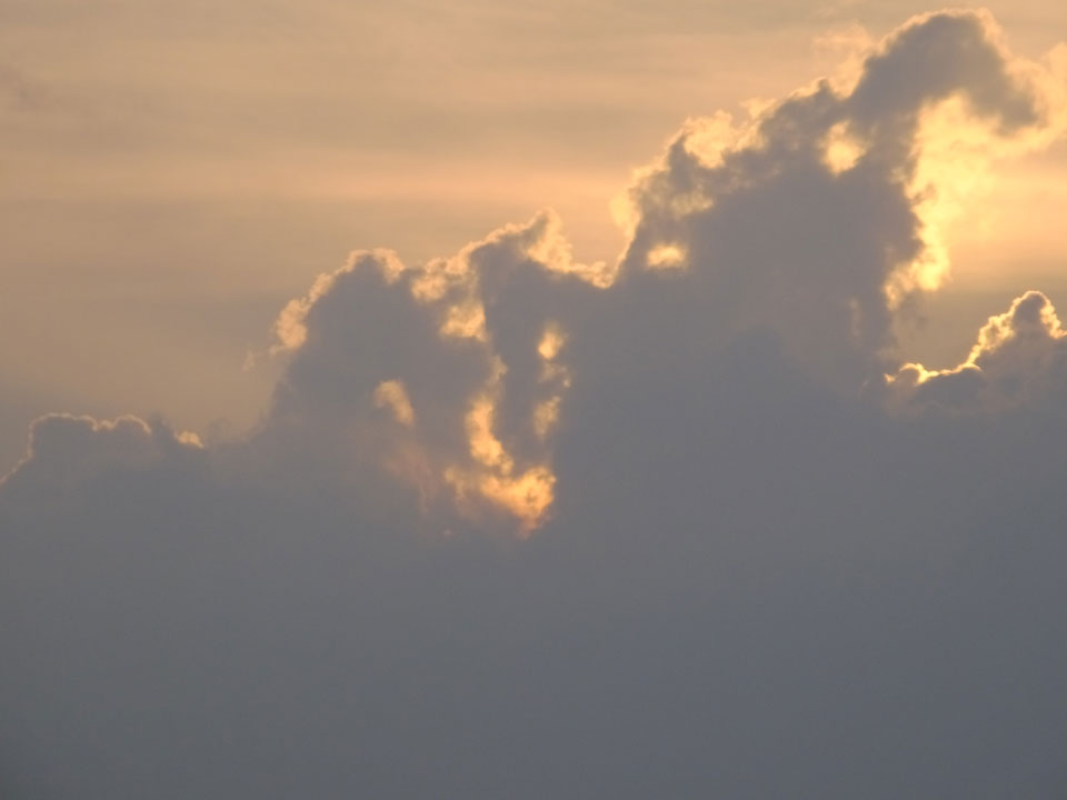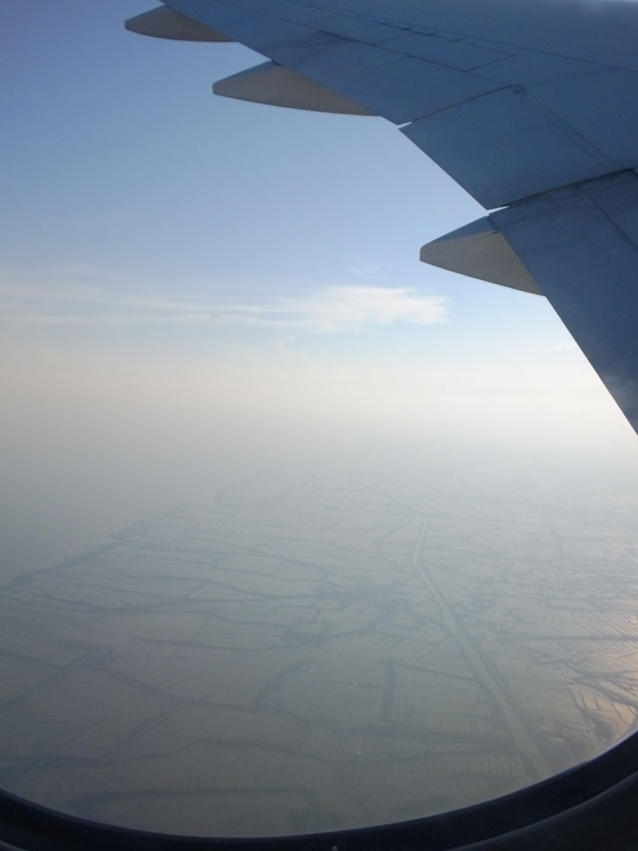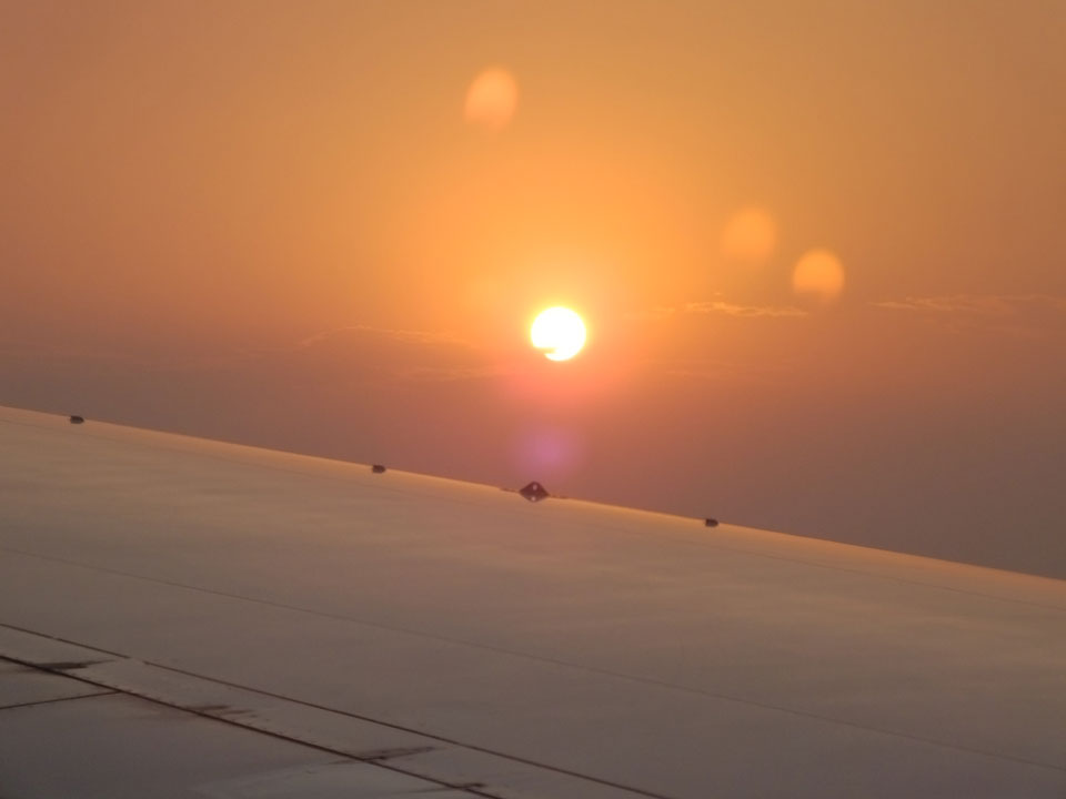 Der Flug war auch angenehm mit Sonne durch die Wolken. Zum Sonnenuntergang in Chiang Mai, dann mit dem Pick up Taxi für 50 THB zum Hotel. Dort will man direkt einen Van für mich nach Pai bestellen – 160 THB soll das nur kosten. Das Zimmer viel besser als in Bangkok. Hier oben im Norden ist eben alles nochmal biliger.