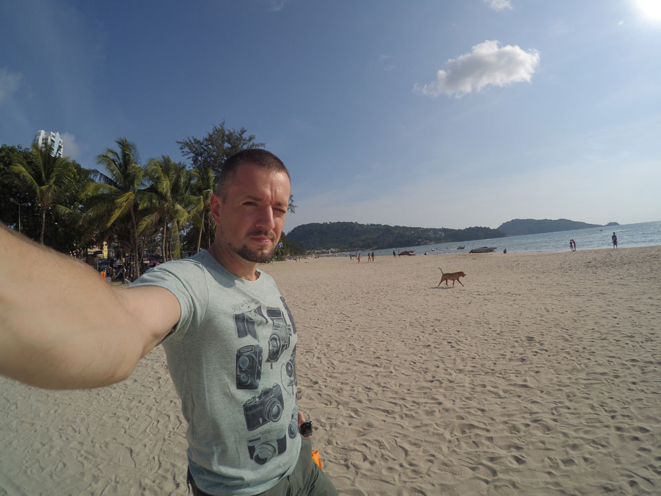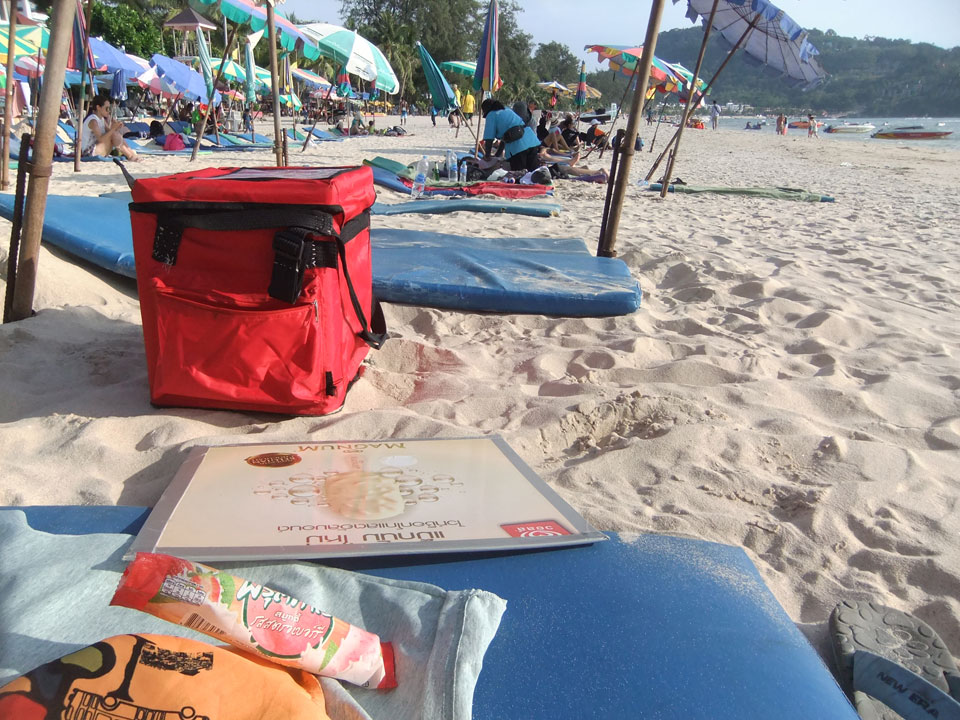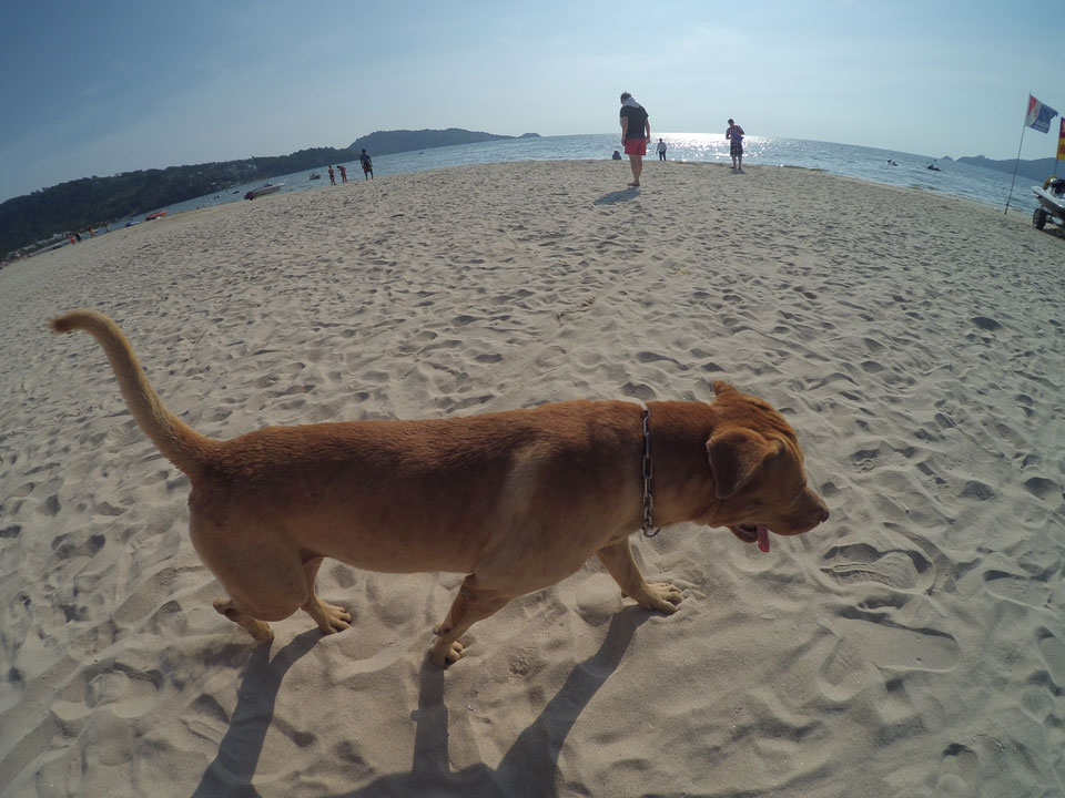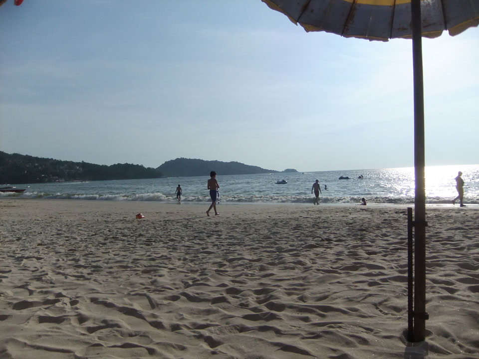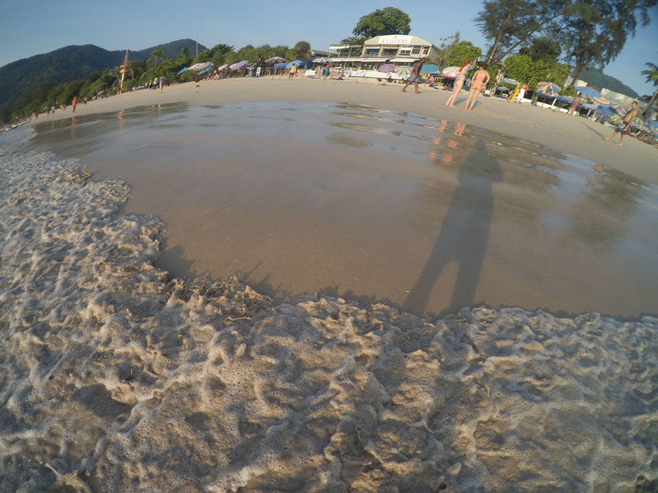 Im Hotel wird gebaut und ich verschwand an den Strand. Frühstück in der Hitze, dann eine Matraze mit Schirm für 100 THB im Sand.