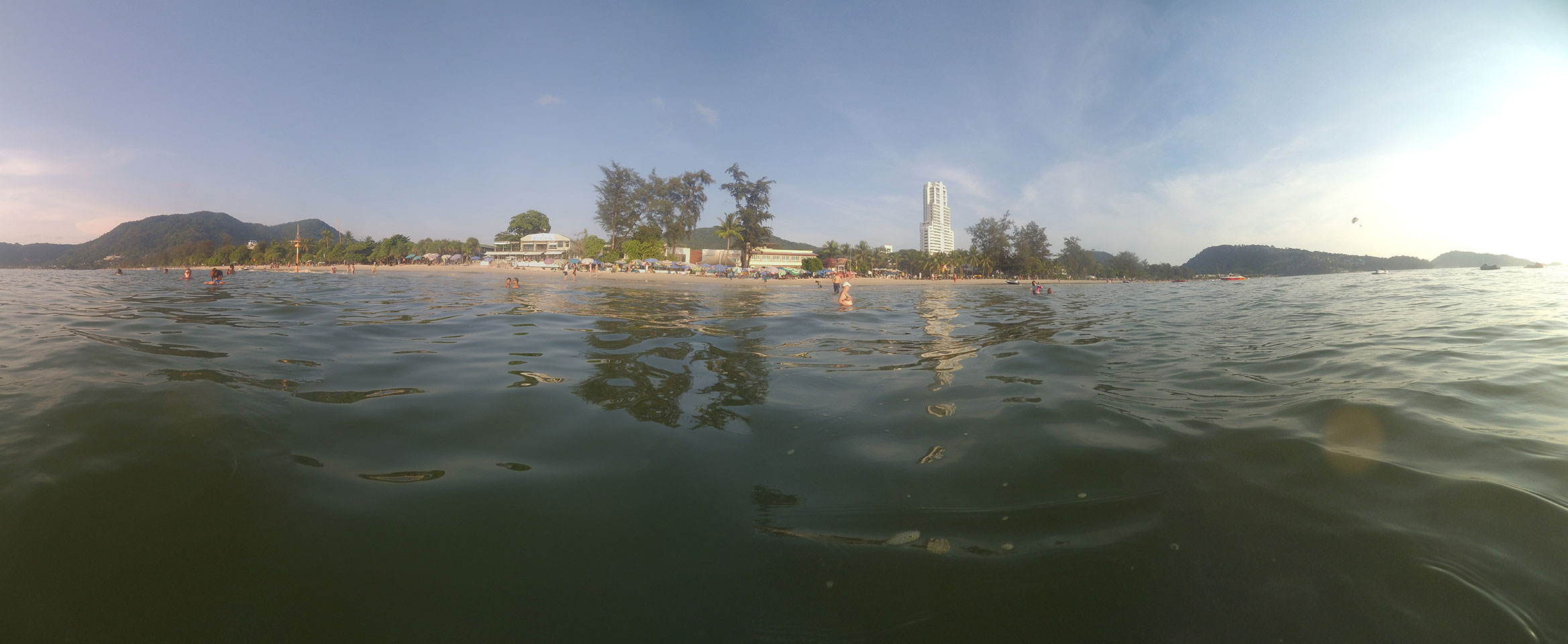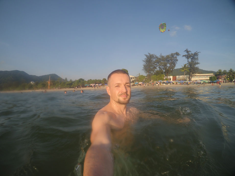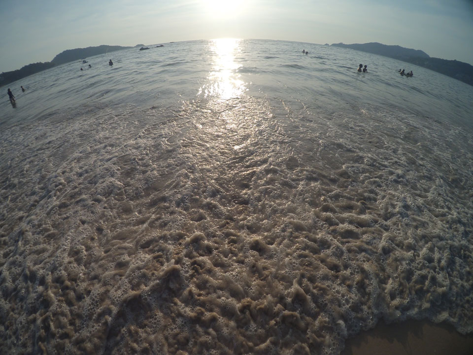 Das Meer ist warm, sodass es eigentlich keine Abkühlung bringt. Zwei Mal ging ich baden. Der Strand könnte um einiges sauberer sein. Die vielen Plastiktüten und Plastikflaschen sammeln sich halt irgendwo mal – auch im Wasser. Wenn man da auf eine Plastiktüte tritt, gibt’s bei mir immer einen Schreck. Könnte ja auch ein Fisch sein.
