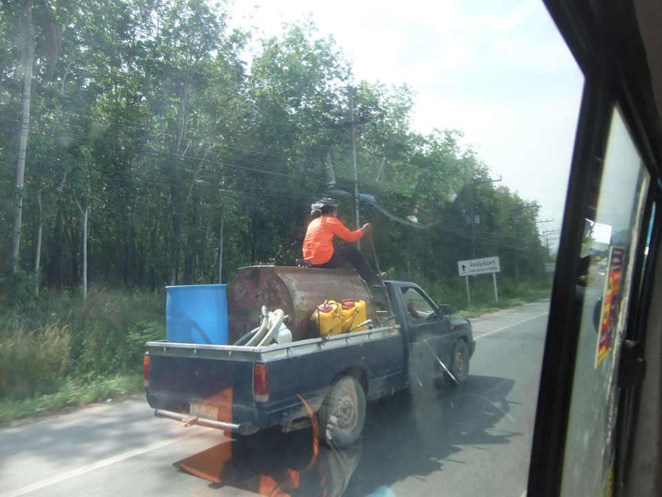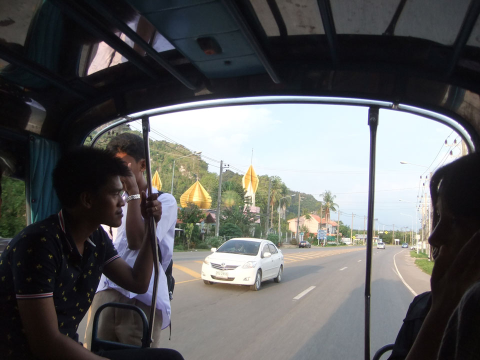 In Krabi dann wurde ich und ein Mädel abgesetzt. Mit einem Pickup-Taxi ging’s schließlich weiter durch Krabi Town mit Locals nach Ao Nang – nochmal um die 45′ mit der Warterei. Ein paar Spanier waren auch an Bord, die die ganze Zeit quatschten. Interessant die Unterschiede zu den meist stummen Thais.