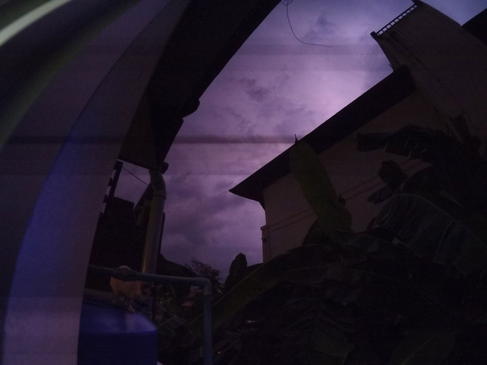 Ich hatte schließlich ein ganz gutes grünes Curry, wobei da auch nochmal 10% Service draufgeschlagen wurde. Im Zimmer dann viel Internet bei Lightshow draußen. Es gewitterte heftig, ab und zu stieg eine Kartze am Fenster vorbei.