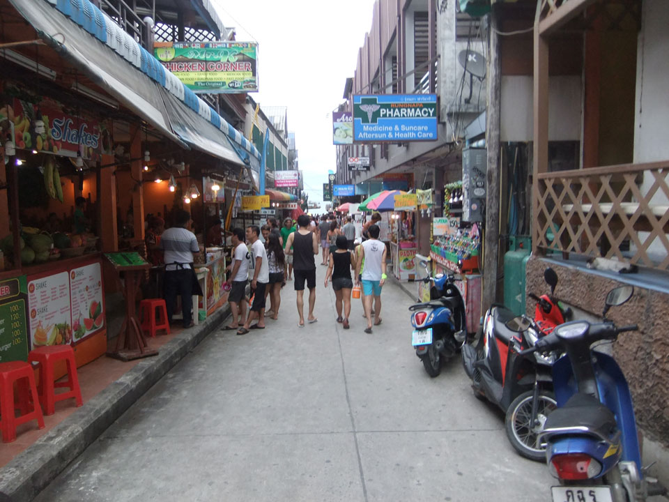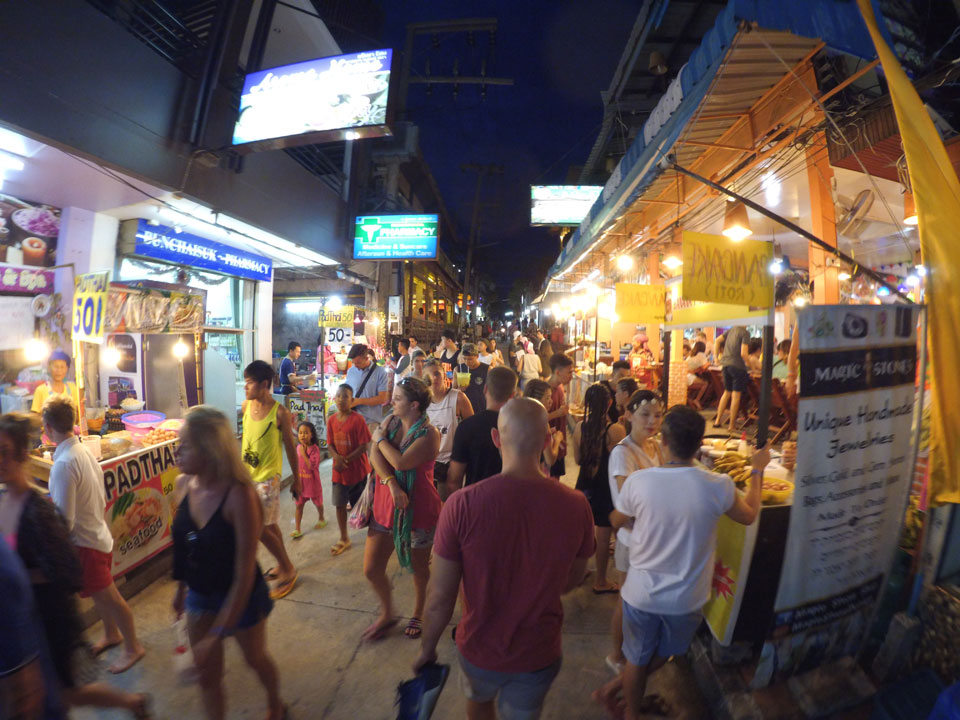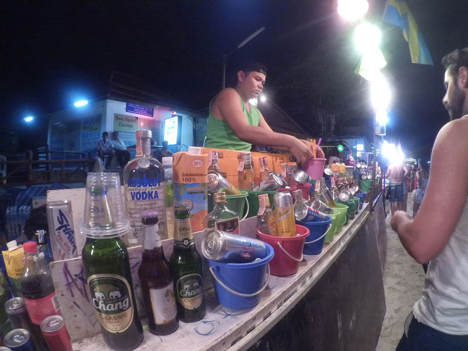 Mit einem Deutschen, einer Französin saßen wir dann abends erst mal vor einem Laden, tranken unser eigenes Bucket mit guter Qualität – Jack Daniel’s + Cola und Eis. Das kam zwar preislich auf’s Doppelte von den Buckets am Strad aber dort bekommt man nur Fusel. Ein weitere Deutscher aus Hamburg gesellte sich zur Gruppe.