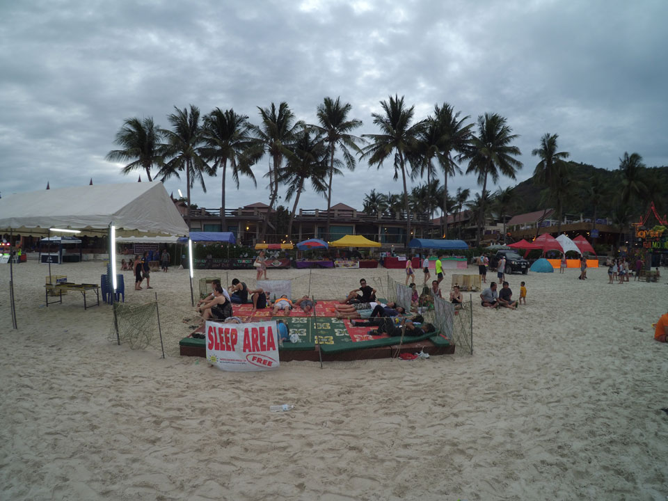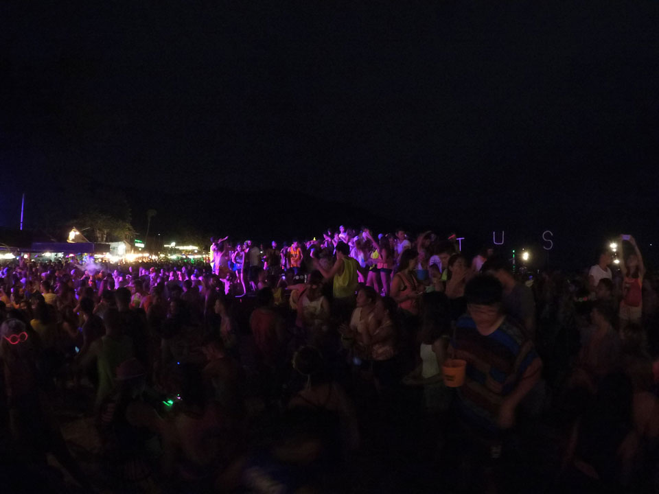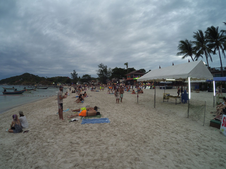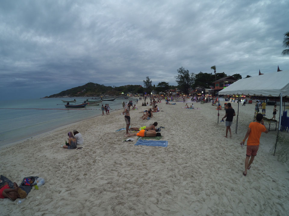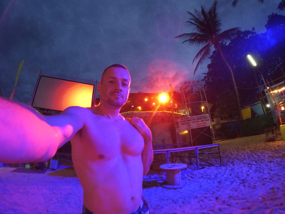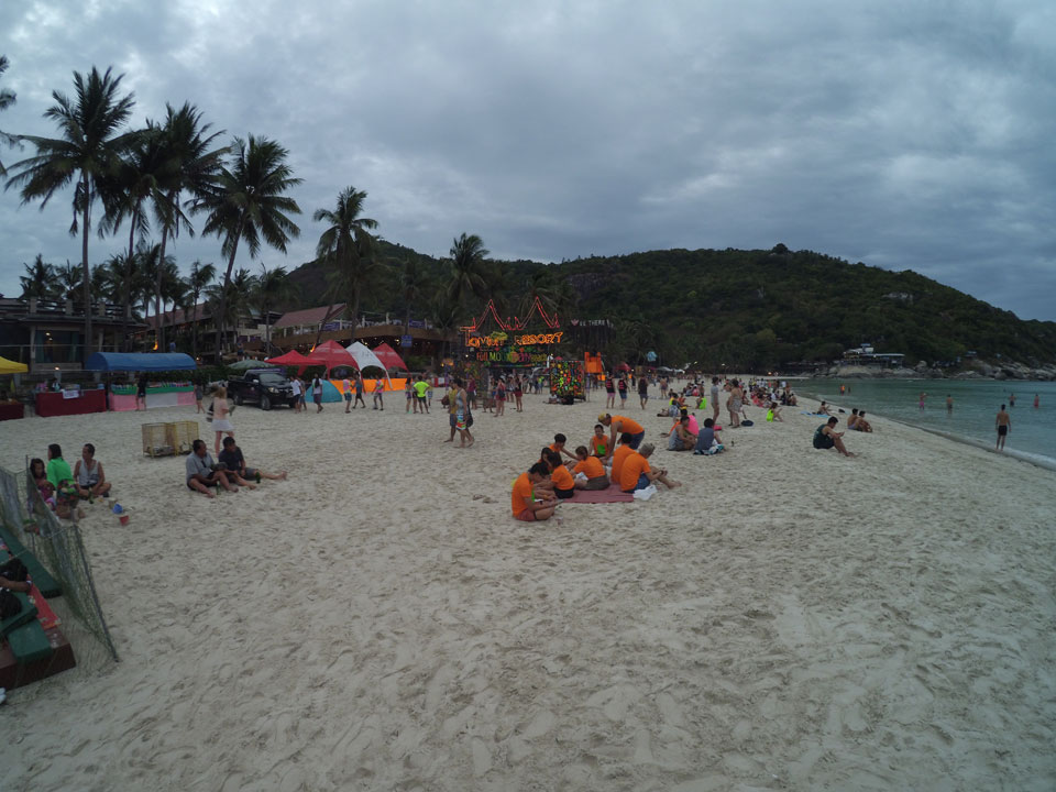 Mit der Yi ging ich den Strand „vor dem Sturm“ mal ab, wollte eine Hyperlapse machen. Dann später zur Party auch nochmal, um zu zeigen, wie voll Haad Rin wird.