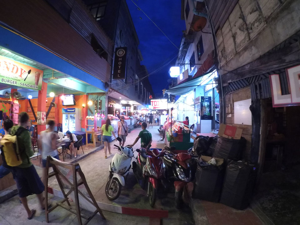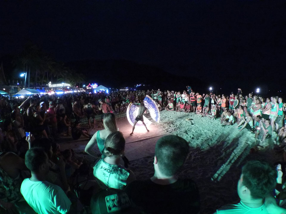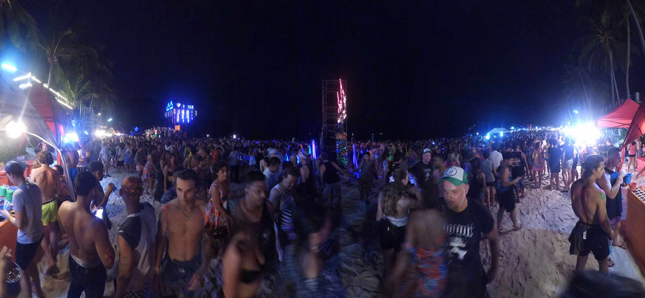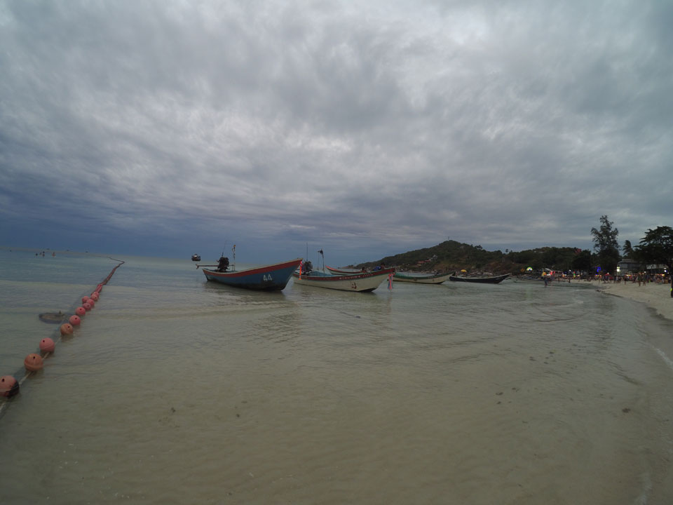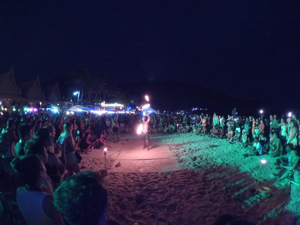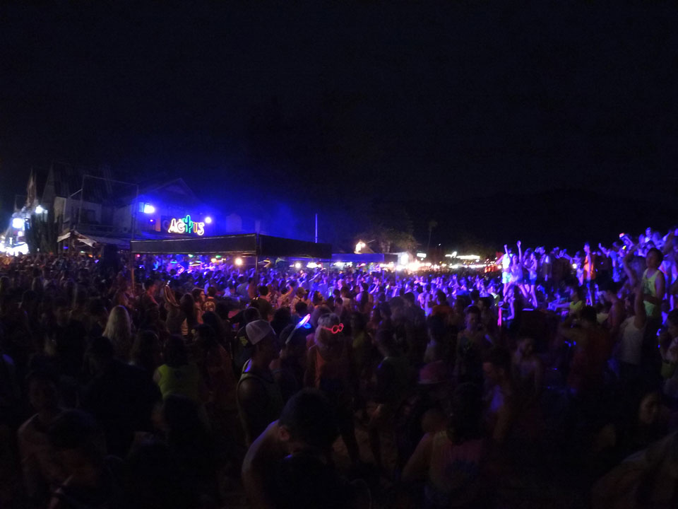Mit der Yi ging ich den Strand „vor dem Sturm“ mal ab, wollte eine Hyperlapse machen. Dann später zur Party auch nochmal, um zu zeigen, wie voll Haad Rin wird.